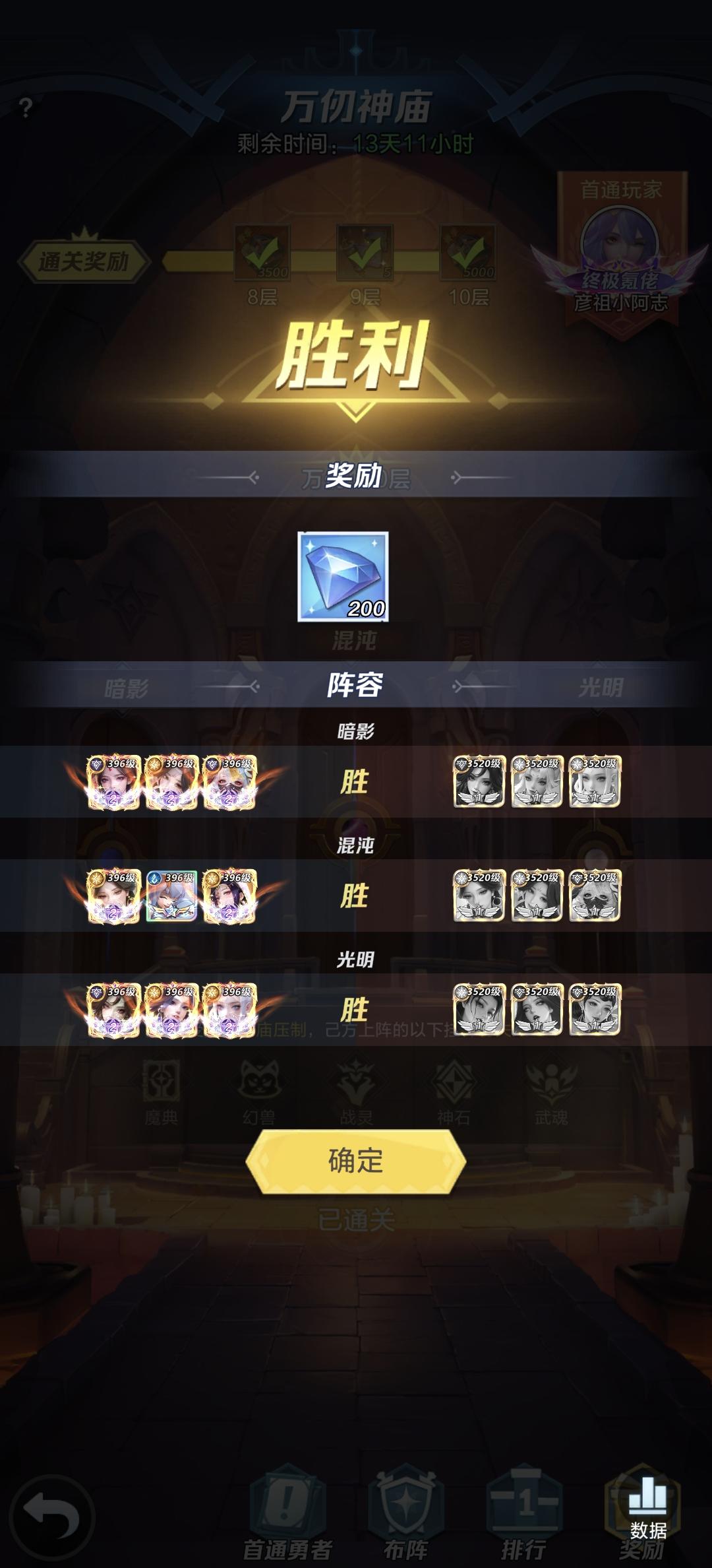 上个日期写错了,重发一次吧。战力还是有点虚,等貂蝉和新法队伍就差不多成型了。战区27,跨服65已经很满足了,慢慢熬吧#上古王冠