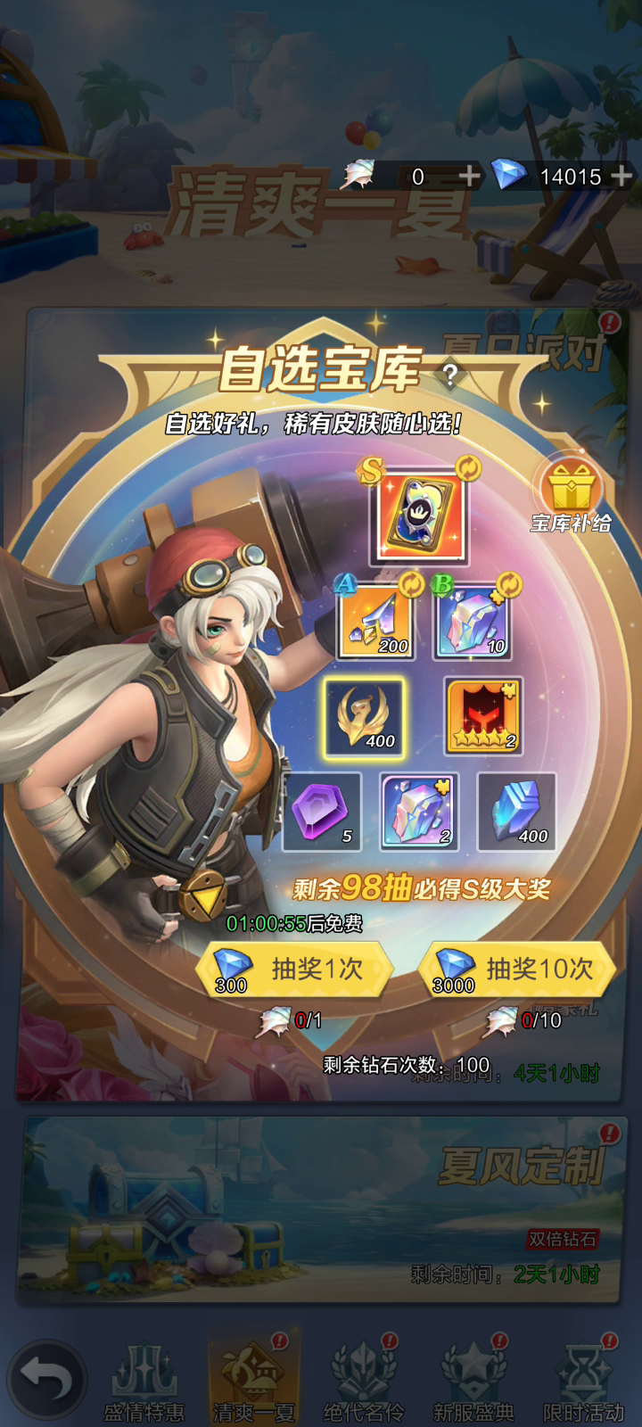 哈喽呀,兄弟们,又是我,上次一百次高抽,今天这个号也放弃了,17000的钻石,5次自选,依旧脸黑,没啥说的!!!😂😂😂