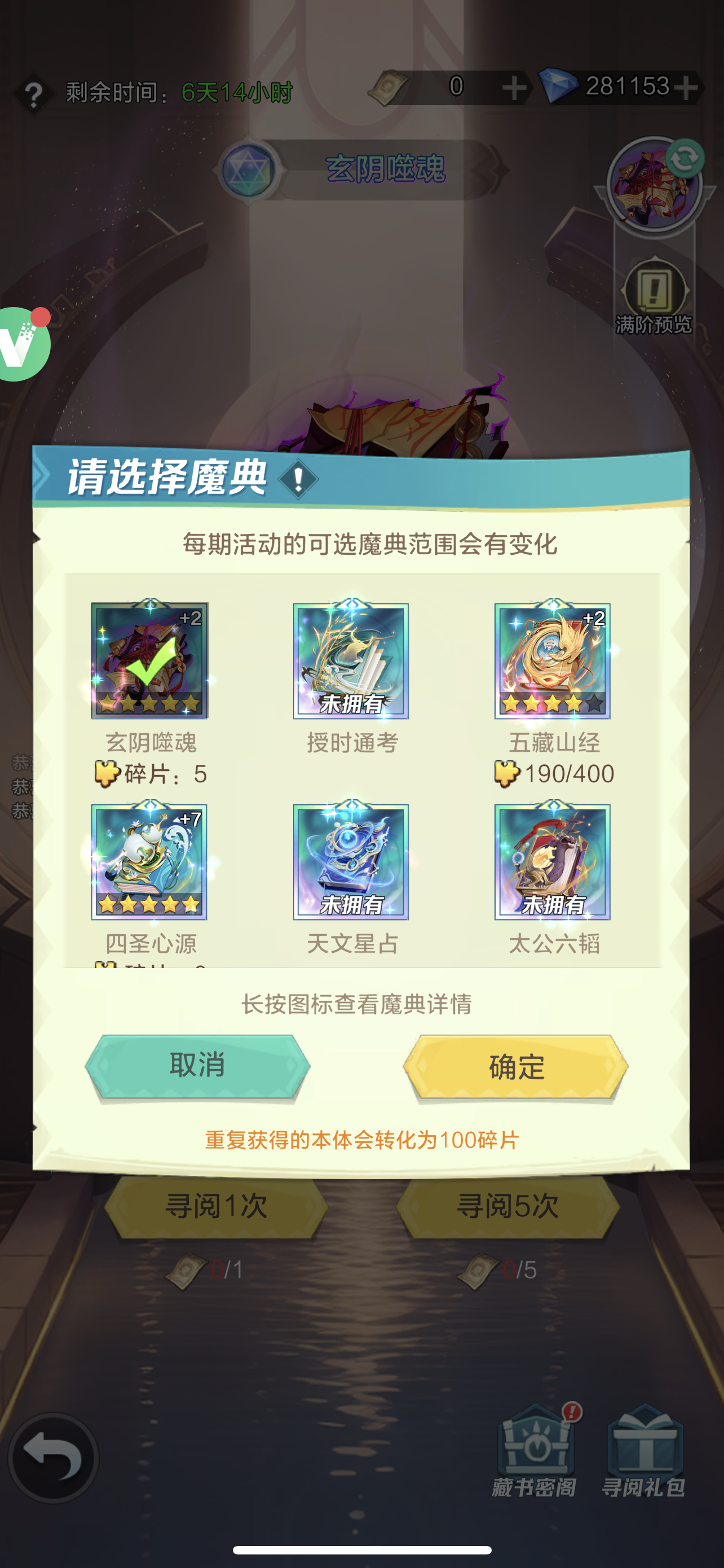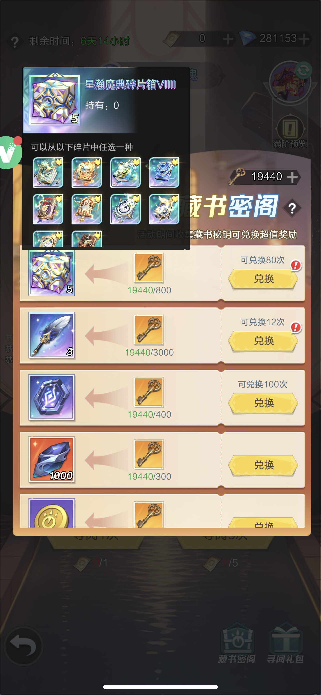 哈喽大家好这里是韩小萱,新魔典也是直接拿下5星了,消耗30+68+198*5+328*5=2728,材料兑换200片才正好5星,这次运气很黑,5连0碎片频繁,看的我心都碎了累充活动本来以为没有的,都打算三星停了,没想到又有了,石刻送的太多,一波就全毕业了,策划下次考虑送材料集合包呗另外,由于之前出了一波魔典战令,这次不用材料兑换也能5星五藏,还稍有溢出P