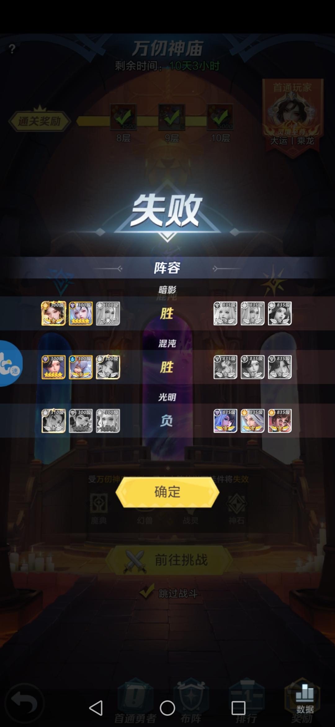 废话不多说,直接说重点:1.女帝一阶神兵,玉环一阶神兵刚需(在神兵铸获取,直接让我1.3亿从40几层直接突破到70)2.鸟人十一星(从白板拉到十一星直接让我突破71)3.貂蝉神兵三阶(直接让我突破90层)主要阵容:1.鲨鱼(女帝神兵)+玄女(十一神五专属三阶神兵)2.莫邪(十一神五专属三阶神兵)+洛神(十一神五)3.貂蝉(十一神五专属三阶神兵)+龙母(十一神五)4.鸟人十一星(十一