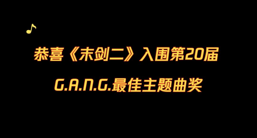 恭喜《末剑二》入围第20届G.A.N.G最佳主题曲奖