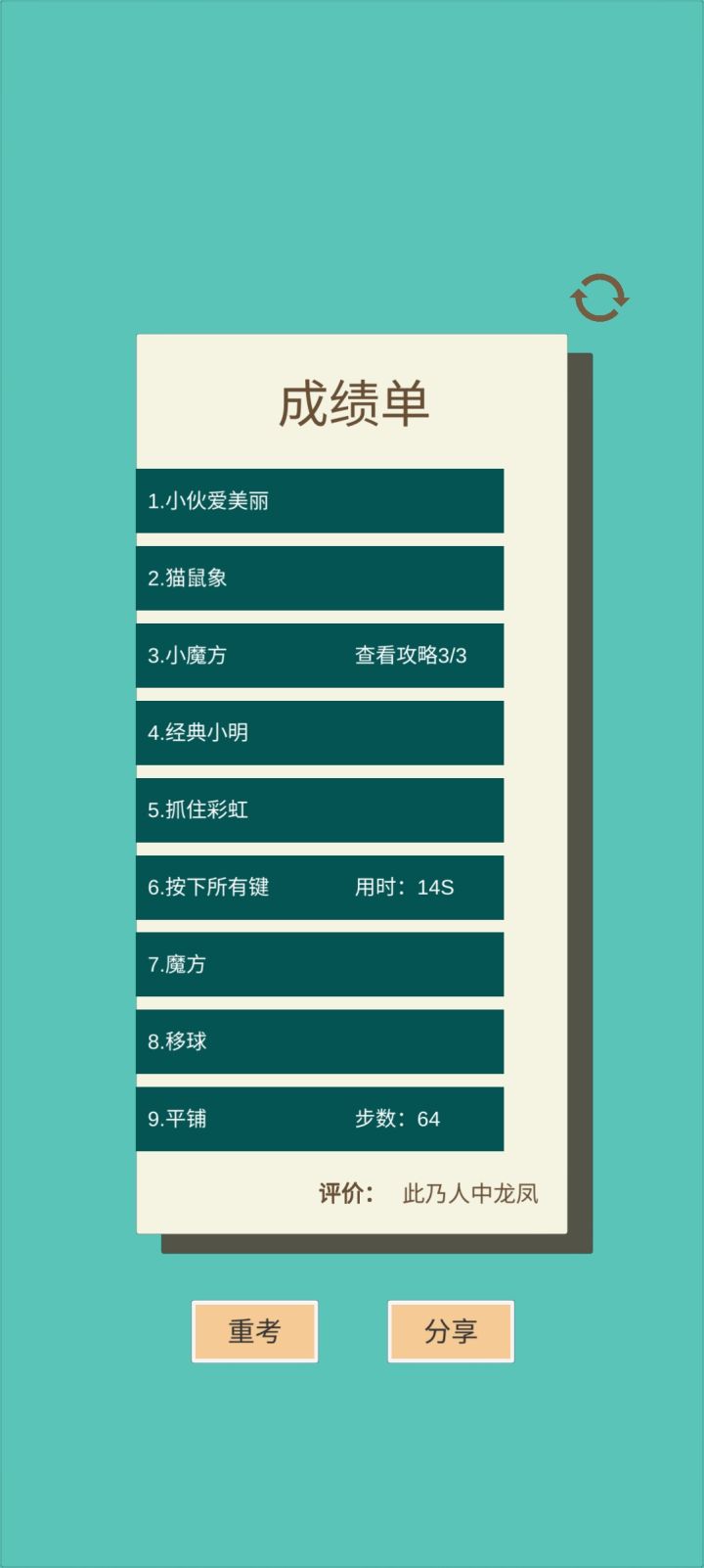总的来说是一款不错的休闲游戏,同时也希望我二十分钟研究出来的通解能帮到大家。