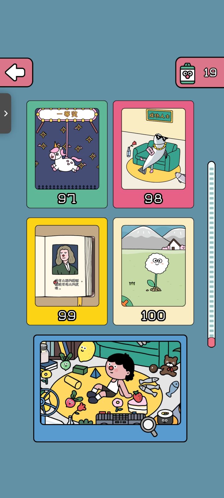 4.游戏并没有其他的模式和内容,成功通关一百关之后,会有个找物品的游戏,做完之后就到了制作人员名单界面。