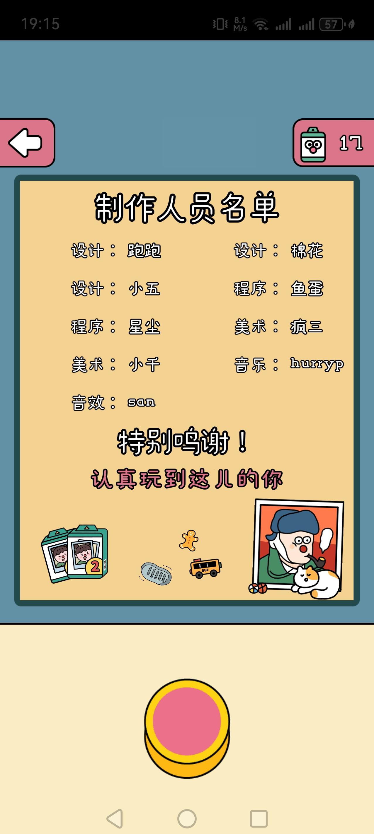 优点:价格划算(一元入手)、关卡数量多达101关(100关+彩蛋关)、解密难度普遍简单也有极个别难(走钢索考验平衡,失败好多次才成功走到终点;箩卜蹲考验反应力,我老是点了边框的颜色人而没点字代表人颜色,或直接提前点错;也还有诸如装一卡车箱子,在没有货物掉出车内情况下完成拍照,这个也重复了几次才完成)、节省时间(我这样都2小时通关了)、益智游戏(考验手速、反应力、观察力、脑力、想象力等几个维