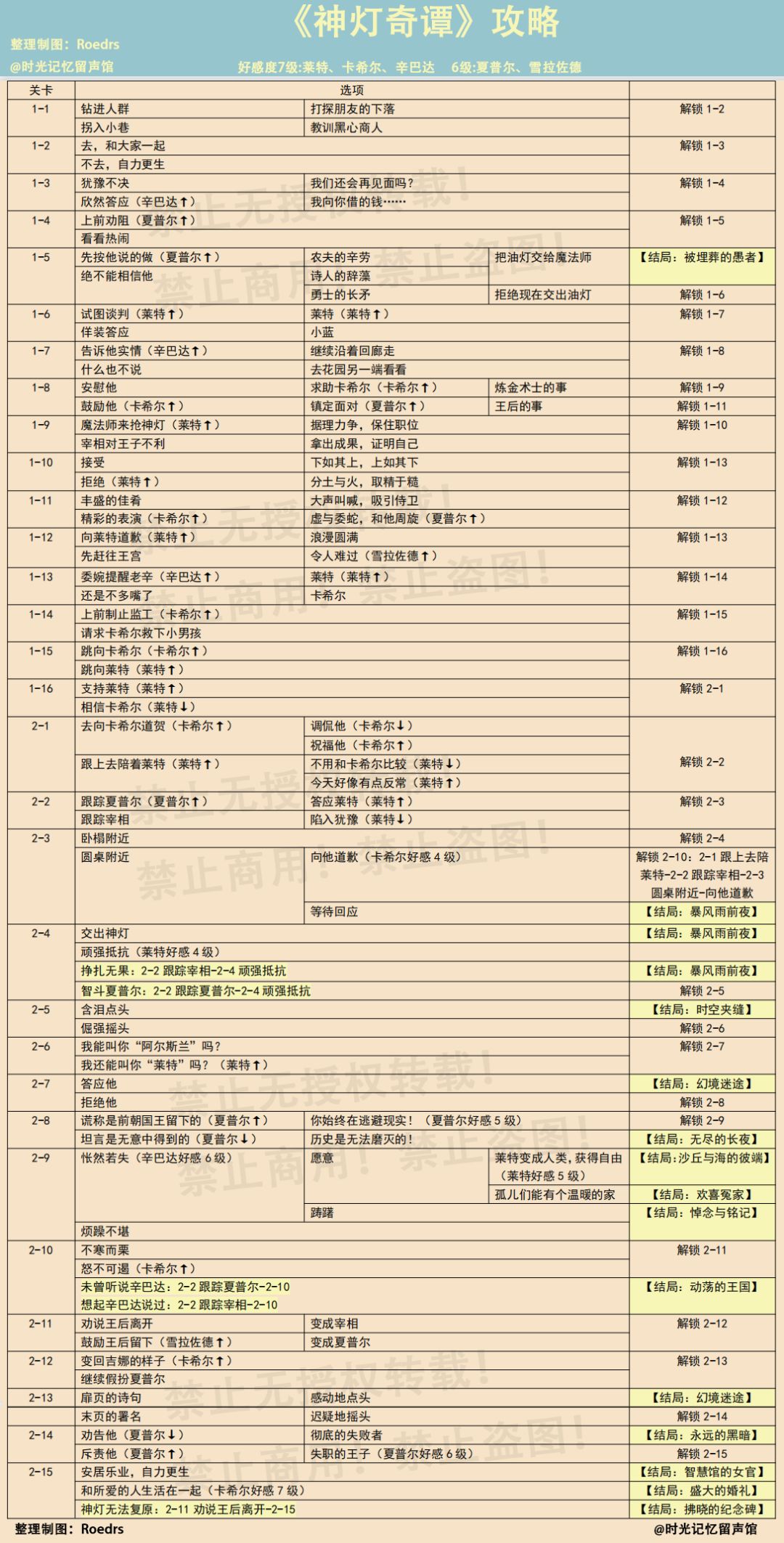 【神灯奇谭】【玛丽王后】攻略~ (用的小号过关测试)浅黄色块是结局+命运指引里会上🔒的地方
