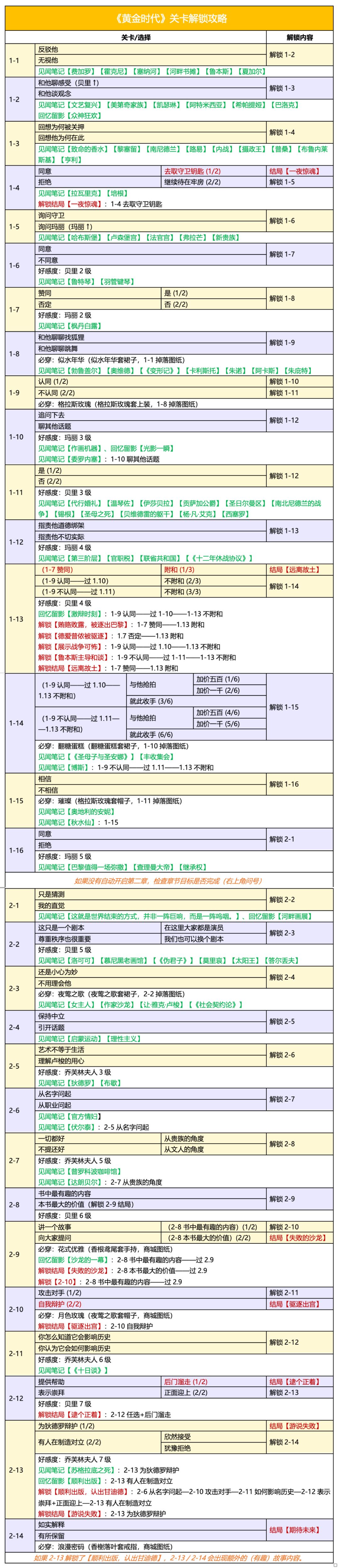 🍀《黄金时代》关卡解锁攻略 / 必做 / 见闻 / 留影 好感度:菲利克斯·贝里7级(五星信物)、乔芙林夫人7级、玛丽·德·美帝奇5级 补充:【1-15】选“相信”得到见闻笔记【秋水仙】 主要参考【tiragooen】