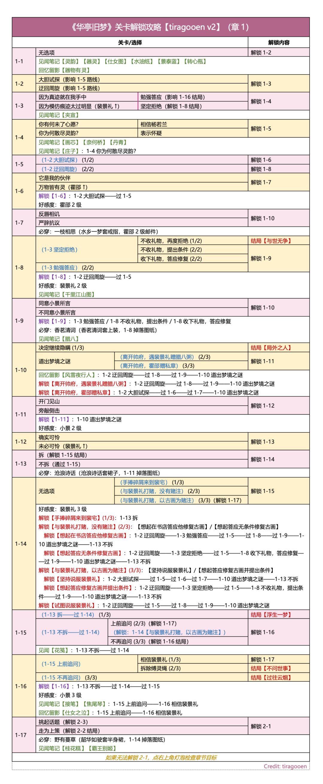 🍀《华亭旧梦》关卡解锁攻略【tiragooen版】 / 必做 / 见闻 / 留影 好感度:霍邵7级(五星信物)、裴景礼7级、小景4级、霍蓝6级 强推。
