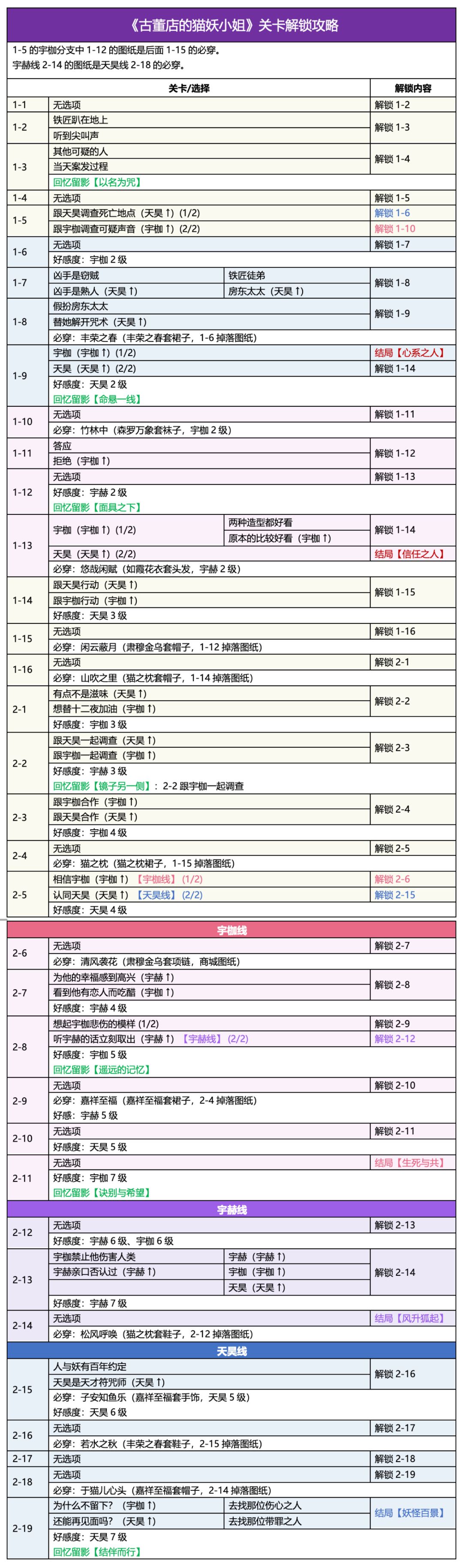 🍀《古董店的猫妖小姐》关卡解锁攻略 / 必做 / 留影 好感度:宇枷7级(五星信物)、天昊7级、宇赫7级 主要参考【tiragooen】