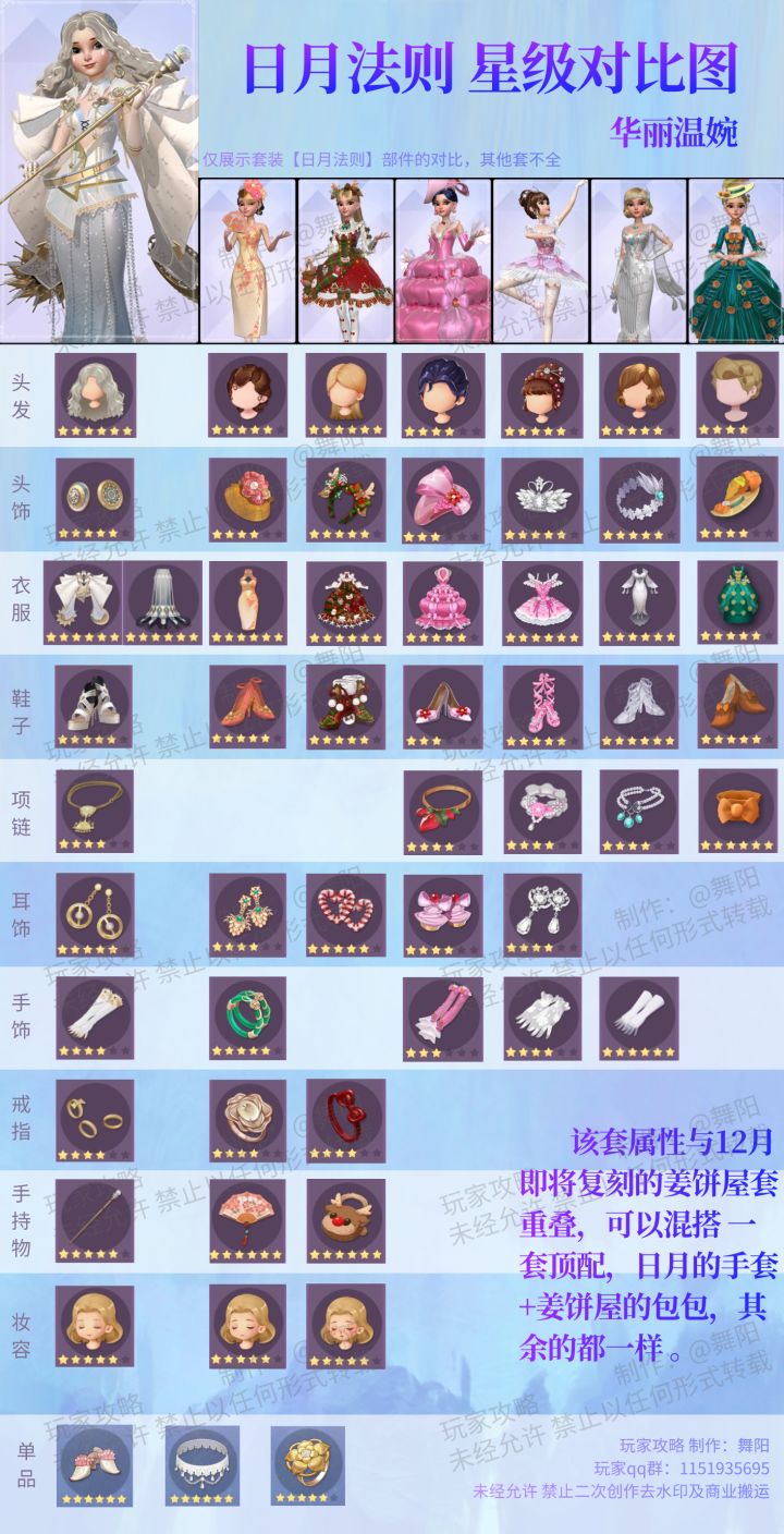 2、日月法则和下个月即将推出的姜饼屋套(红色圣诞套,免费签到图纸活动)属性重叠,可以混搭一套顶配:日月手套+姜饼屋包,其余随意。