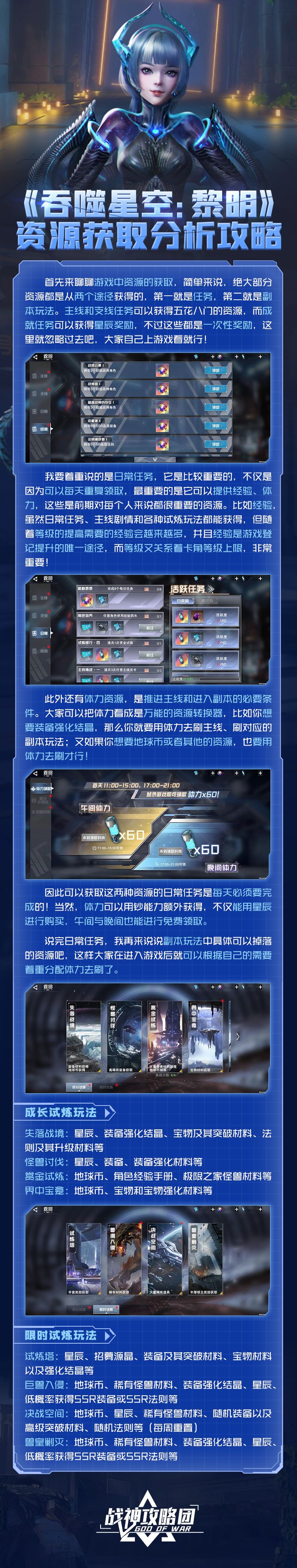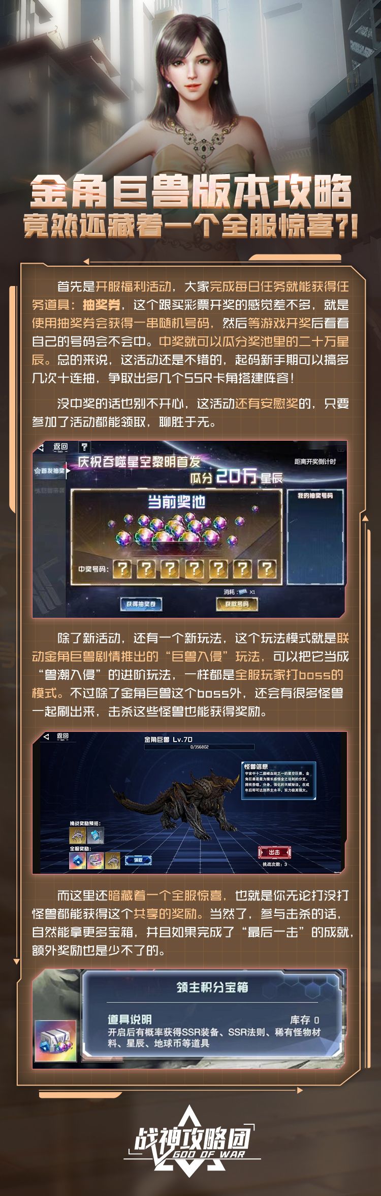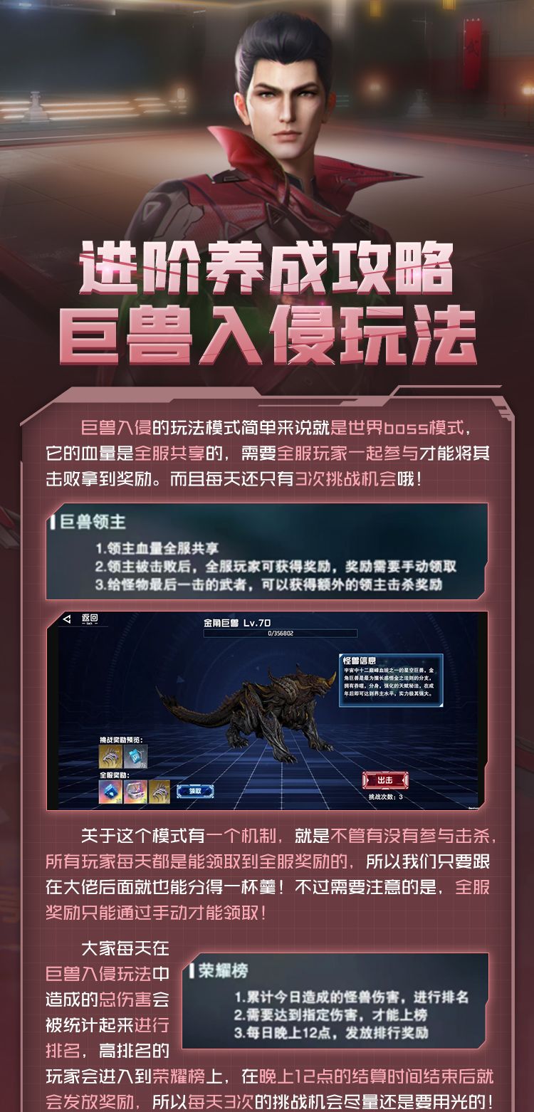 介绍巨兽入侵玩法的内容、技巧以及可获取资源! 说了这么多,文中的小技巧你们心领神会了吗?为了获得奖励,大家可要好好养成卡角啊~#攻略#吞噬星空:黎明