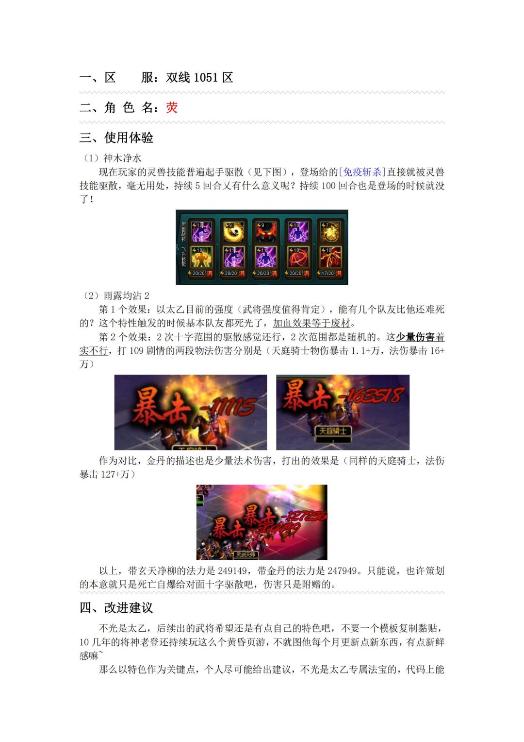 如图,起了个大早做了测试,顺便把昨天在论坛发的建议也修改了,重新发一下#将神 #太乙天尊 #玄天净柳