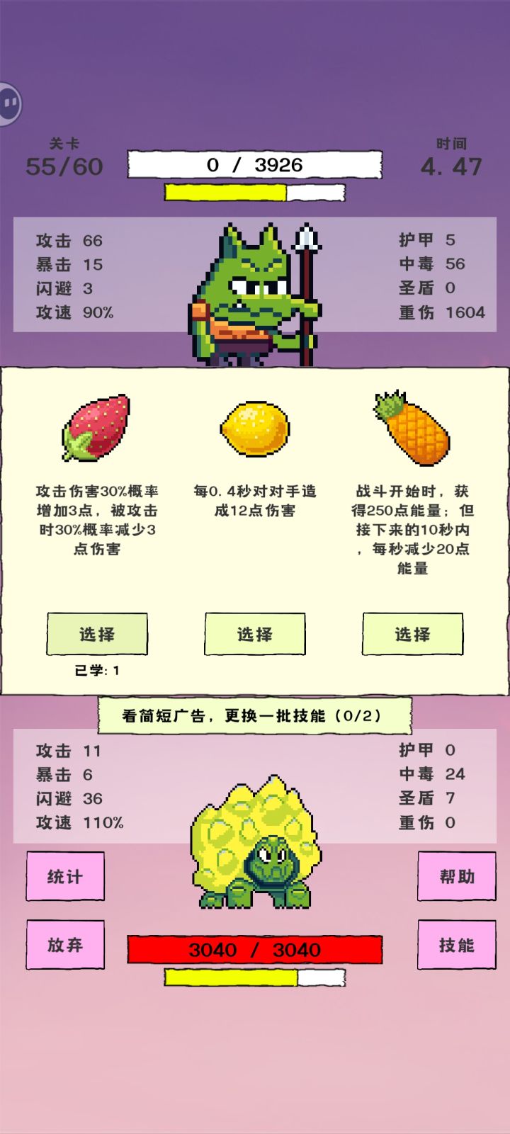 11关笑死,早知道敌我双方都是这么肉,就应该选一下每秒加攻击每秒加暴击,这把没有给狂暴成长,但是血量跟回血叠了很高,每秒回复最大生命值,每秒回复敌人攻击的生#我选技闯关 命值这些技能很不错的[表情_吃瓜]