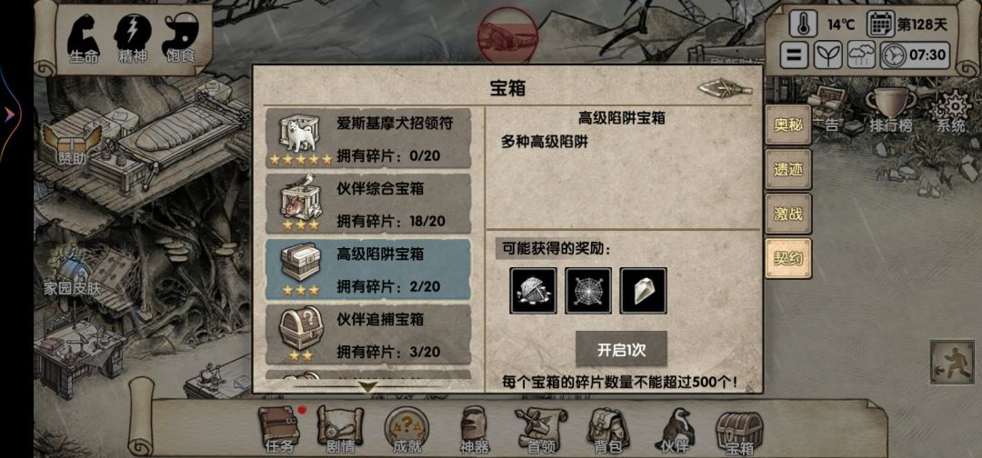 开局先做主线任务。先开陷阱宝箱。雷电伤害宠物开局,陷阱看两个小时广告等6个小时就可以。这个陷阱是必出的。
