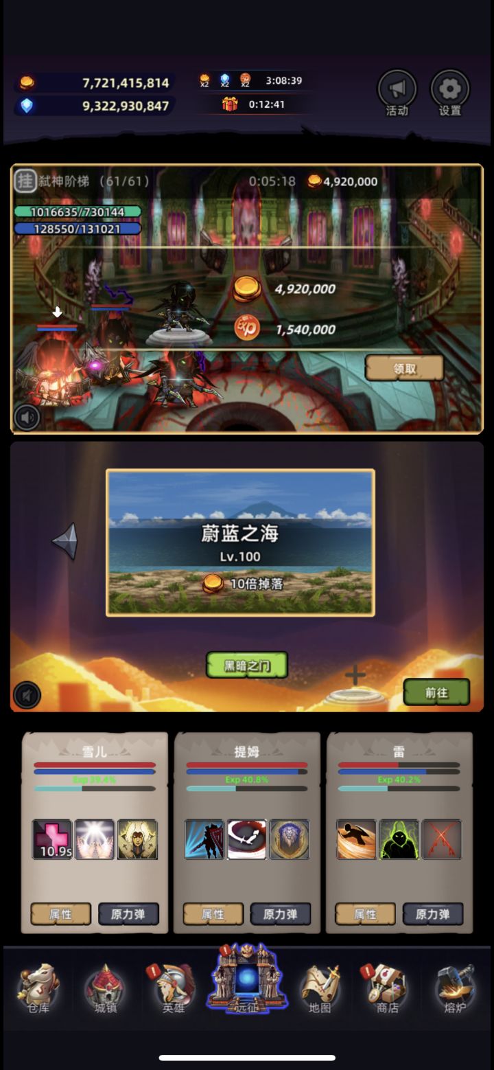 先发图,证明是自己玩的,非拖,玩了67个小时,不到70个小时的样子,当然,这70来个小时,基本保持20小时在线!应该在50小时左右的时候过了弑神阶梯,忘记截图啦!手动!前面的属性图应该是最低属性过的弑神阶梯吧,哈哈,小白,还没到追求速度的时候,所以全手动,时间有点久!说一下个人这几天的游戏感受!1.加个群,加个群,加个群!重要的事情说几遍,哈哈,群里有各种礼包码,兑换完事,基本保证能顺利度