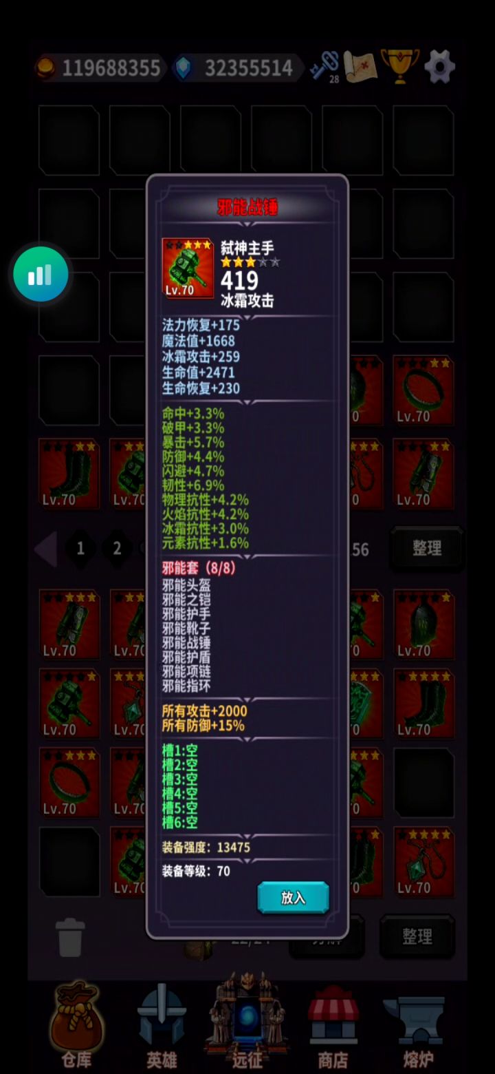 前期攻略鱼乐大佬写的已经近乎完美(游戏不更新了),附上链接有需要的自行查看1.0.70攻略(6月20号更新内容) - TapTap1.01版本攻略因打过弑神阶梯(图12)就能开启金钥匙,抽取完美银散性价比过低所以大部分装备只需要抽到关键词条即可(散件要先看六个转盘广告才能抽取)注意触发套装增益需要把多余套装装备放到仓库或者背包(触发成功人物会闪光)战士战士技能开冲锋➕快