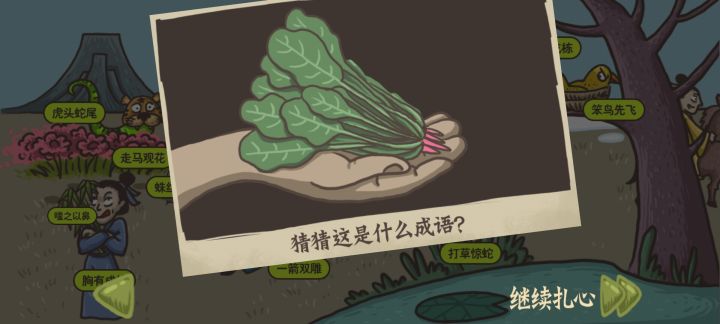 通关打卡,是前几年特别流行的烂梗游戏,但质量在同类里面真的出类拔萃,首先表白画师和画风,真的很用心很好看;然后表白配乐配音,特别东北话真的笑死人。游戏里面有大量流行梗,不是所有人都能get到的,然后确实广告看的有点烦。综上可以给个4星(ps有谁知道这是什么成语吗,真的猜不到)