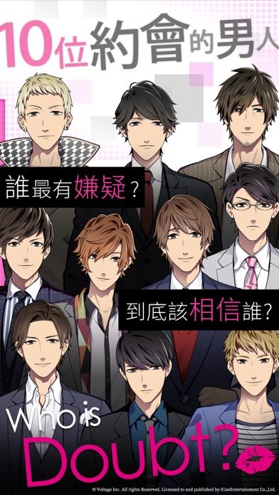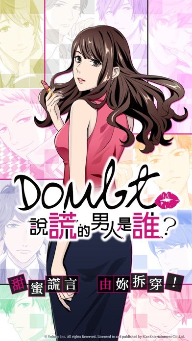 《Doubt~說謊的男人是誰?》是一款「新感覺」解謎手機遊戲,玩家將扮演一名典型的「殘念美人」,職場能力強但戀情卻岌岌可危,在前男友的背叛下,面對父母的催婚,參加聯誼與十位男主角相遇。但是卻發現,有九位男主都在說謊。遊戲過程中,玩家需善用敏感的推理神經,揪出其中的渣男,甜蜜謊言,由妳拆穿!。
