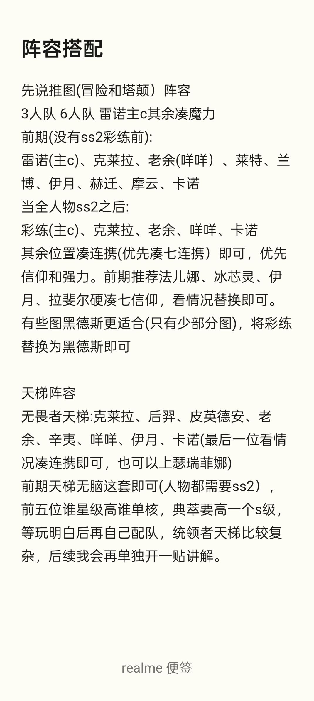 已经玩了42天,发现游戏里和论坛中关于游戏新手的养成和玩法的分享攻略很少,论坛活跃度也不高,所以想和大家分享一下我这一个月的游玩心得与阵容!的话不多说上图。 充了俩块钱,但是玩过的都知道这游戏充俩块和零氪一样哦,所以大家可以当零氪分享来看。 乘这次彩练up直接把战力拉到了快1000亿!,彩练是对冒险提升最大的伙伴,有了她我们可以越战20多倍来推冒险,有这个时期入坑的萌新可以放心大胆抽!!祝大家欧气