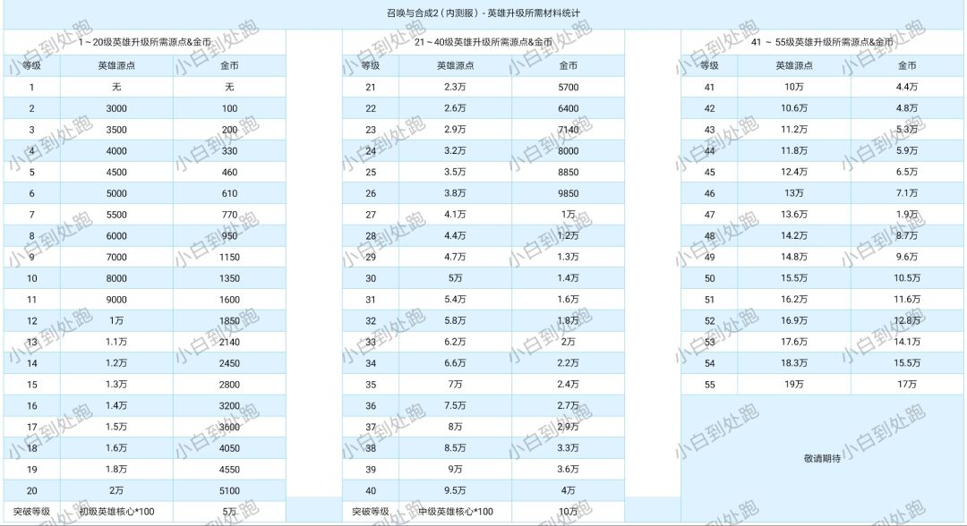 【萌新攻略】1~55级英雄升级所需英雄源点&金币详细统计