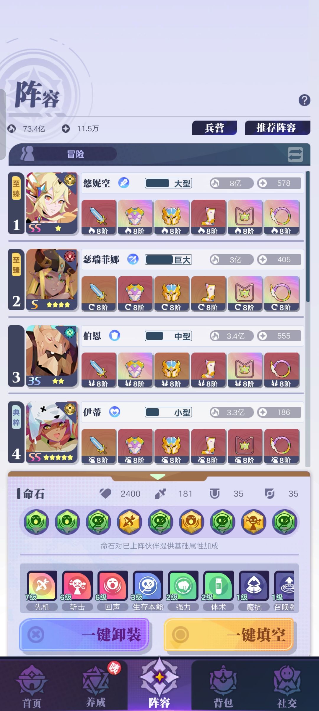 大家好,我是莱恩。 盼望着,盼望着,我带着老朋友【不弃丶咘弃】(B站UID:40780315,TapTap ID405003574)新手攻略三部曲的【下部】来了!话不多说,让我们有请不弃—— 大家好,我是不弃,今天为大家带来召合2最后一期新手攻略,感兴趣的朋友继续看下去吧。 五.阵容 阵容界面主要就是调整伙伴、装备和命石的地方。开始只有三个伙伴可以上阵,随着冒险关卡的提升会逐步解锁4-6的伙伴和7