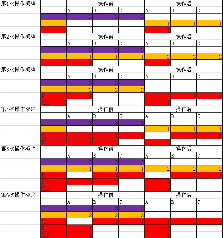 RT 52级沙盘打法如图,打完单核大概15.3W。难度大概和之前46级沙盘打12.8W单核相当。 PS: 发个帖子还能失败,需要再发一次,TAP论坛真垃 52盘打法补充: 1、第五次操作凝眸三个伙伴三紫合成就好,不要多和蓝、紫,多合蓝也有概率超分。 2、第七次操作纯净在能量够的情况下尽量放在第三盘纯净,单核能多640形态。 3、第八次操作凝眸一定要放第三盘,不然单核少2200形态。 54盘以上打法