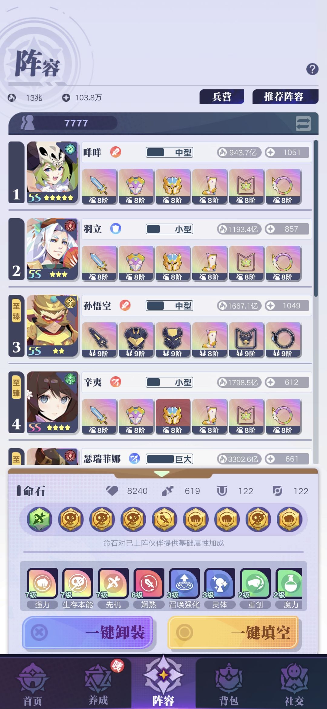 今天给大家推荐一个练度更低的冒险阵容,新版本180关总用时1小时40分钟,(这个号是除了985/993关其他都是单核彩莲过的)彩莲战力10兆即可,装备带增伤补爆发,阵容和装备如图所示,欢迎大家交流[表情_微笑]