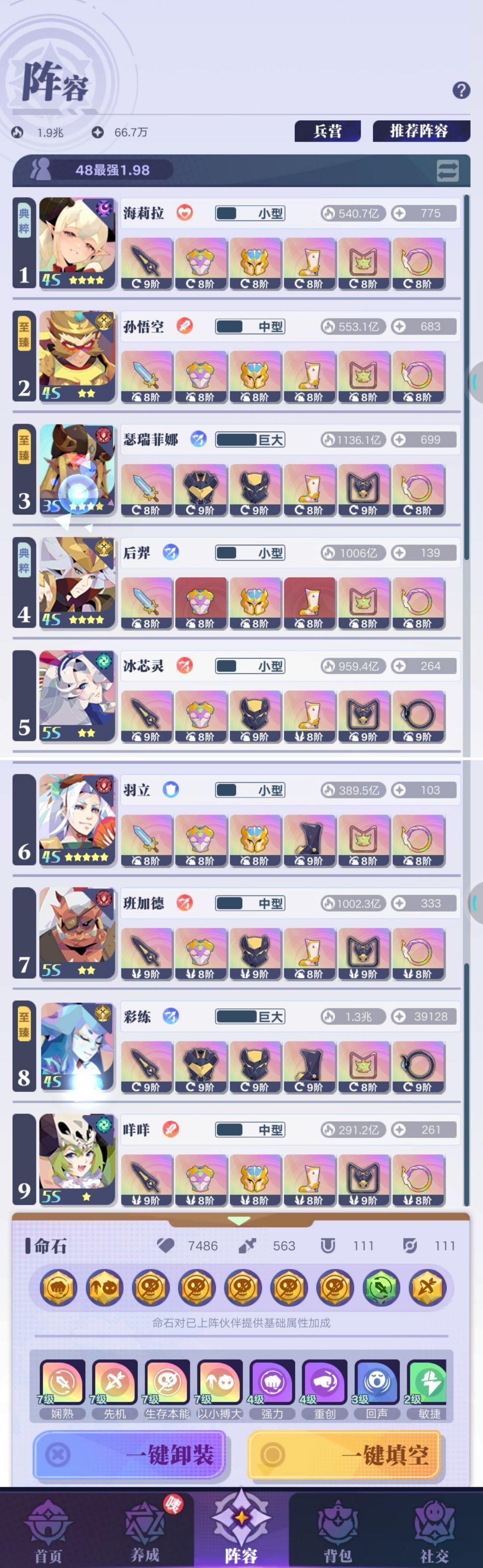 阵容及主c如图所示 主c欣怡的阵容需要小体型加成的命石不好凑,且平民星级不高,这套是最平民的连协组合