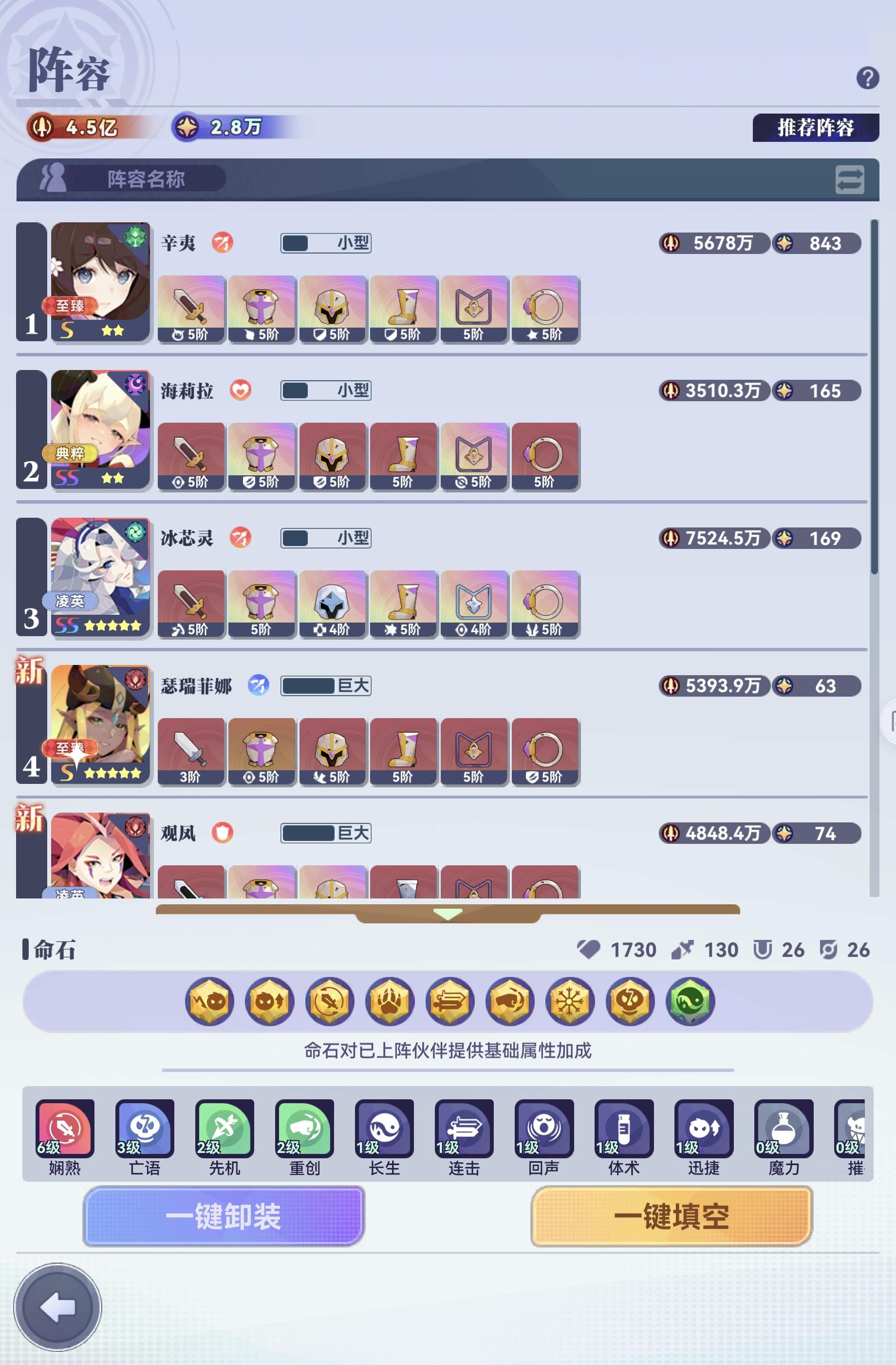求解,为啥总有几个命石显示镶嵌中啊我看飞跃天梯,统领天梯,冒险,魔王里都没用上它们啊,大佬来帮忙看看。最后一张图中的强力,长生,精准,魔力几个……