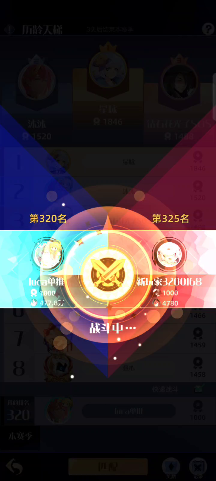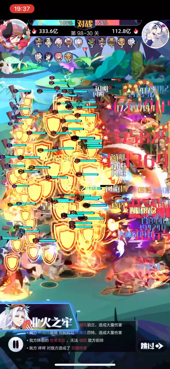 击飞套恶性bug,对面只剩下一个之后直接无敌,看着满屏幕伤害数字,对面战力反而越抬越高,最后承伤数值只有一点点,暂时只在冒险遇到,不知道对天梯是否有影响,冒险触发概率极高,建议冒险不要带击飞套