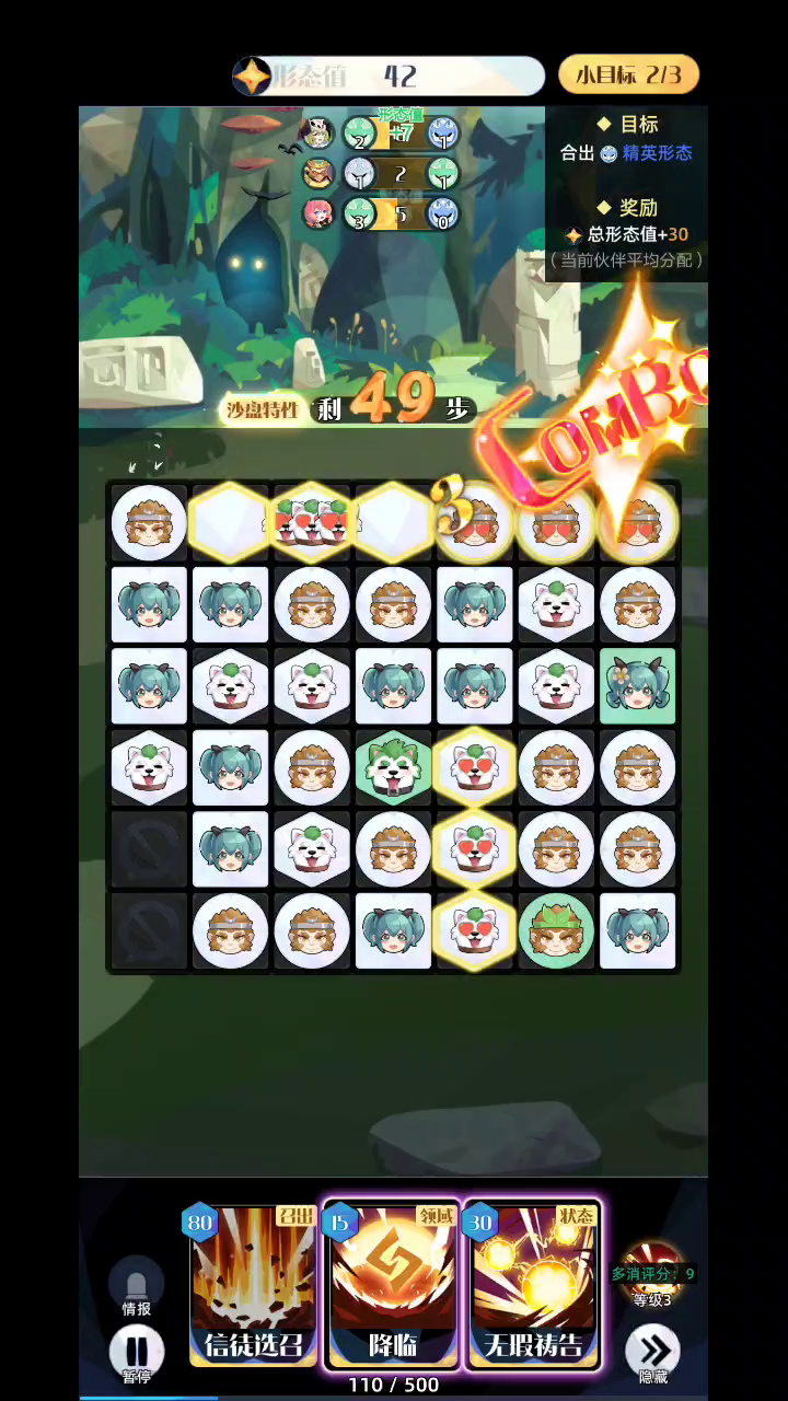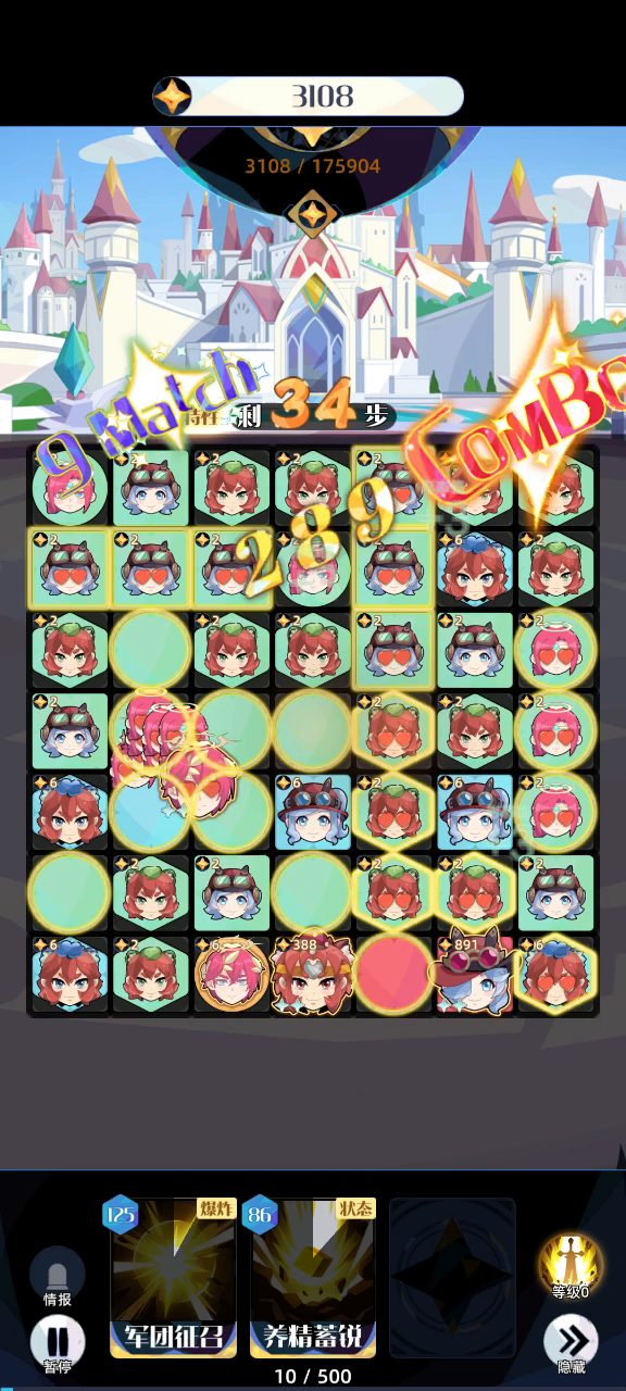 最后贪了4蓝,炸弹稀烂,三3红玩法后面会卡格子,4紫在第一轮合,后面卡的会好点,这把合了7个4紫,29盘开始可以玩三3红