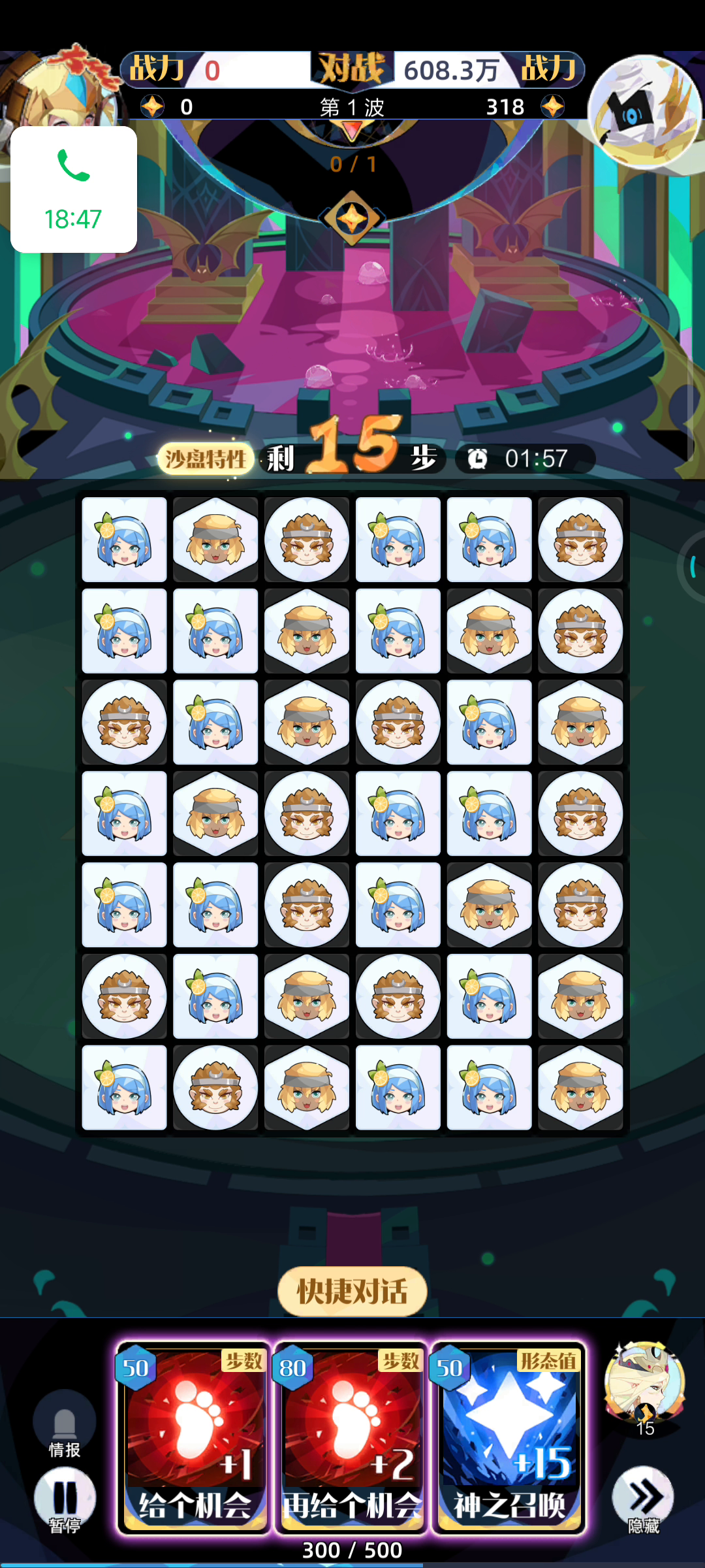 遇到加步数的,慢慢消除的,是真的恶心,但是考虑到很多人不知道这个怎么玩,所以发视频科普一下 进去后 第一件事,用完加形态值的技能,并且观察哪里可以交换不产生消除 第二件事,一直交换消耗步数,30s一局