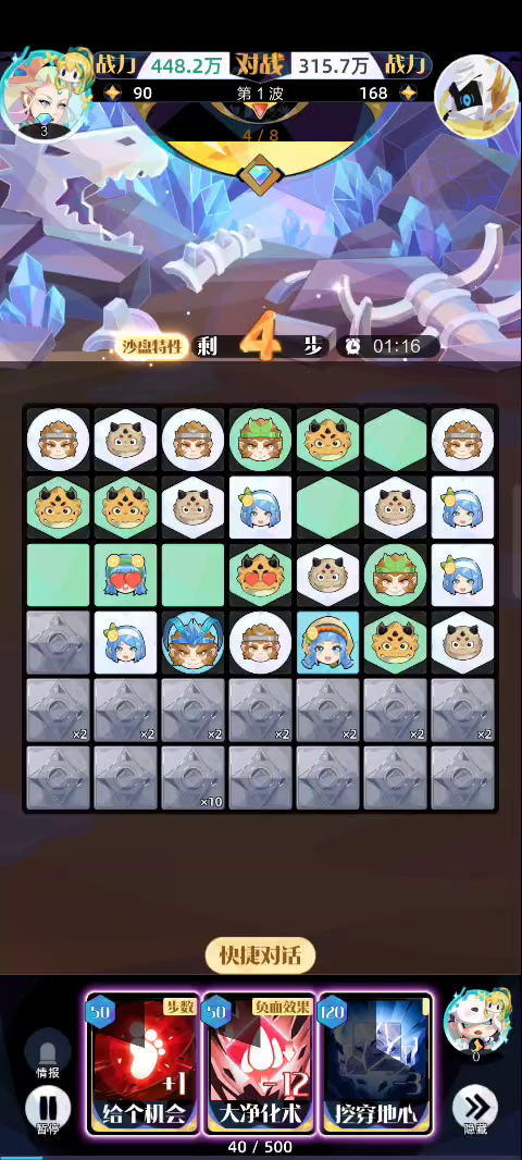存盘前剩1步,重进后剩1步(正确),这一波打完后新的一波只有1步(错误,我的50步呢???)存盘1步2步都有这个bug,不知道其他数字的存盘有没有这个bug,所以需要存盘的同学,建议在新的每波50步时就存盘。