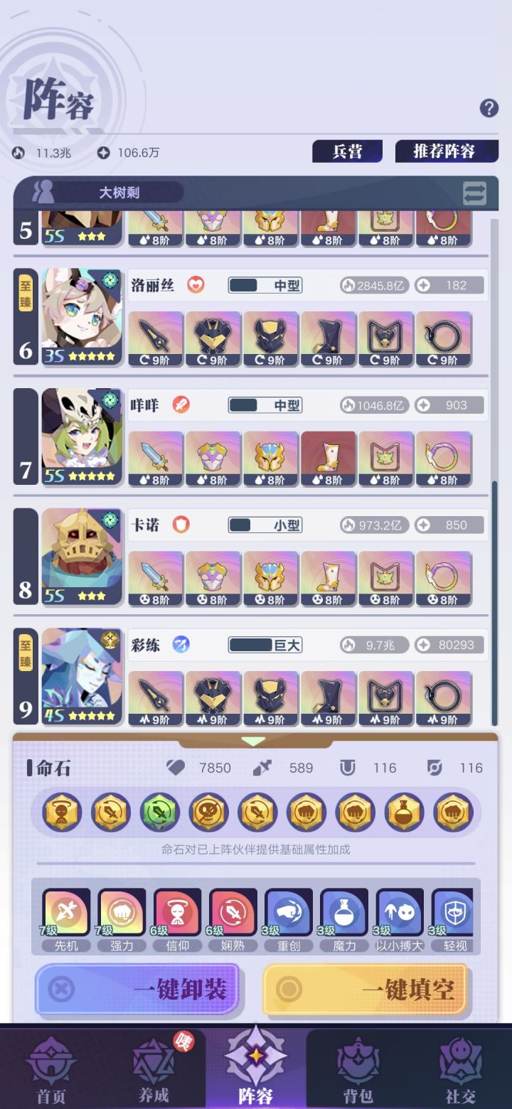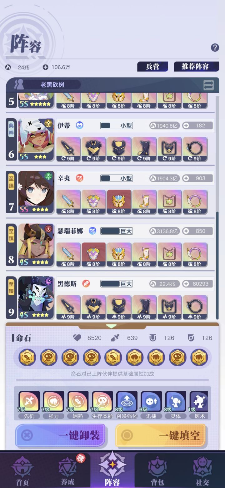 从从过年开始就在肝冒险,战力不足,研究了各种阵容都分享出来了。9人阵容推图机器名字写7777的是强力先机生存带克莱拉。老黑彩练可随时互换,适用于大部分,战力碾压的图。老黑砍树为四7阵容,也是用于大部分图,有大树和巨型怪时候更为适用大树剩强力先机信仰阵容,适用于有大树后排较多的情况,但彩练伤害不足时经常剩下两个大树。信仰射树信仰变种,由于只有九张图,前面,差不多就不放了加了老黑