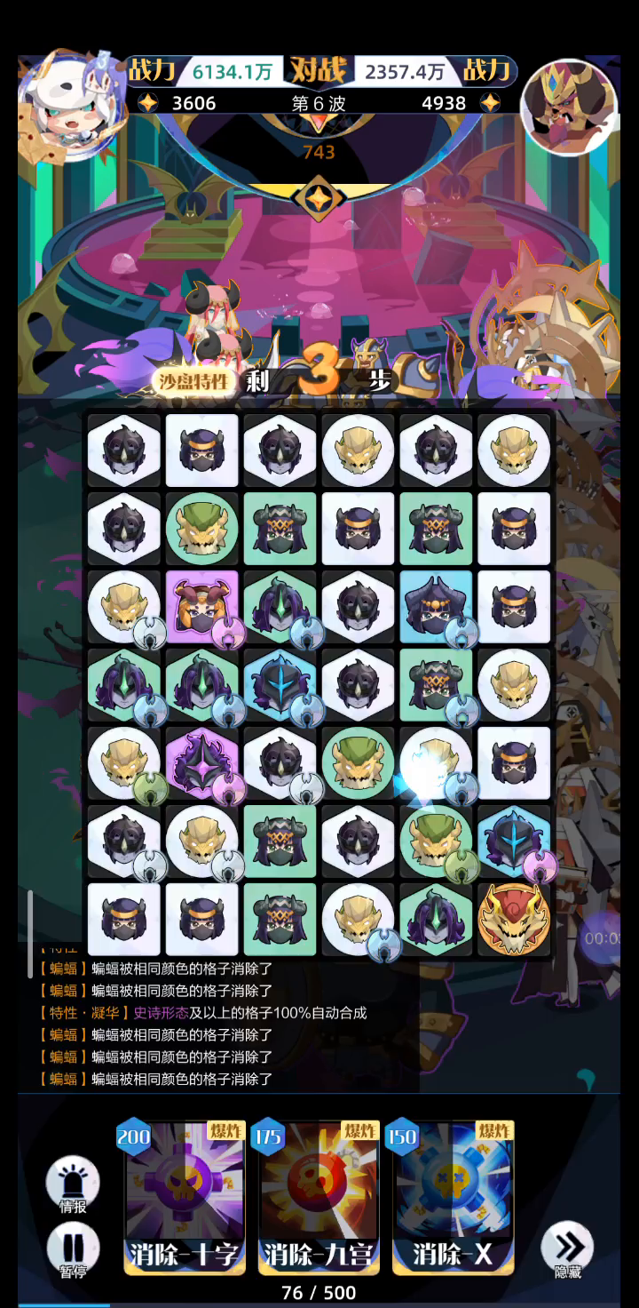每消耗一步,增加几十几百步,一堆自动消除,完成3~5个成就。。。手机烫得不行差点退出不了,强行拖单个退出来,一局光成就拿了5600钻。配置在最后。