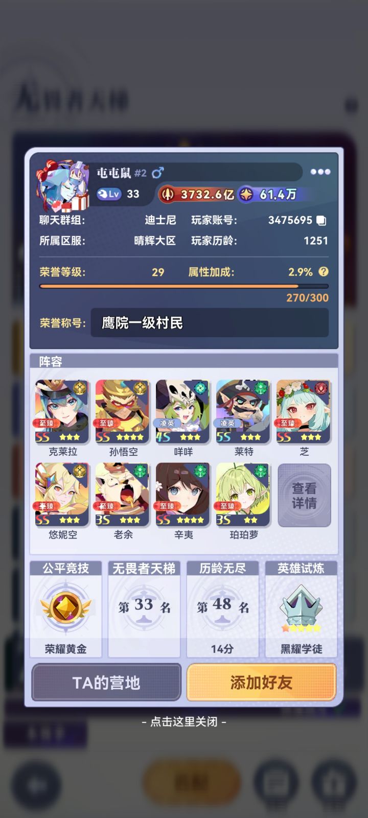 已经玩了42天,发现游戏里和论坛中关于游戏新手的养成和玩法的分享攻略很少,论坛活跃度也不高,所以想和大家分享一下我这一个月的游玩心得与阵容!的话不多说上图。充了俩块钱,但是玩过的都知道这游戏充俩块和零氪一样哦,所以大家可以当零氪分享来看。乘这次彩练up直接把战力拉到了快1000亿!,彩练是对冒险提升最大的伙伴,有了她我们可以越战20多倍来推冒险,有这个时期入坑的萌新可以放心大胆抽!!祝大家欧气