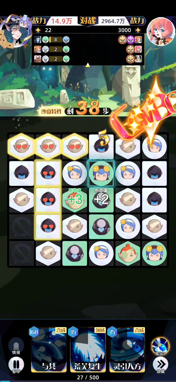英雄:樱哉 技能:降临,秩序调和,信徒选召 主要策略:降临生成领域,秩序调和召唤,信徒选召全屏炸掉【基础策略来自论坛叨叨叨大佬】 我的阵容:奥克【ss四星】藏狸【ss五星】清橙【sss一星】 具体步骤: ①先消四步,能量攒到120 ②然后降临→秩序调和*3→(降临→秩序调和)*3→秩序调和*2【用到用不了】→信徒选召*5【能量剩余100】 ③再消下一步,技能重置能量消耗,重复上述操作