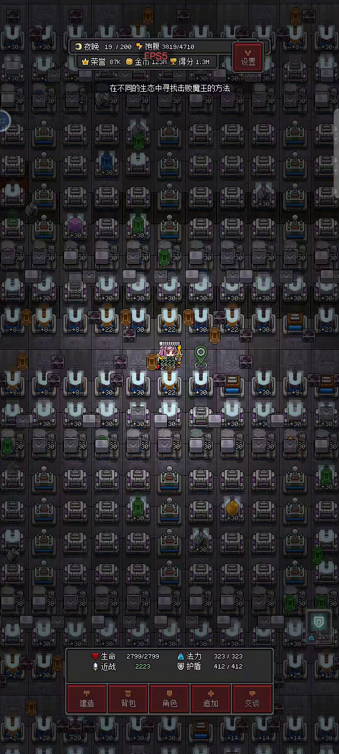 16矿机,2噩梦环境(减少魔能溢出,大幅减少幽邪地形的产出) 看过上一篇的可以发现,实践之后魔能溢出还是有点严重,实际上只需一个蓝宝石和一个铁回收魔能理论上能带动20矿机。 1%蓝宝石产出几率*20矿机=20%,5步9.6k/0.36k≈26.67矿机,铁的产出几率太高,看作100%,1.8k/0.36k=5矿机,也就是说每一步产生的魔能满足5个矿机需要,5步就是25矿机。考虑到每一步都有铁且有且