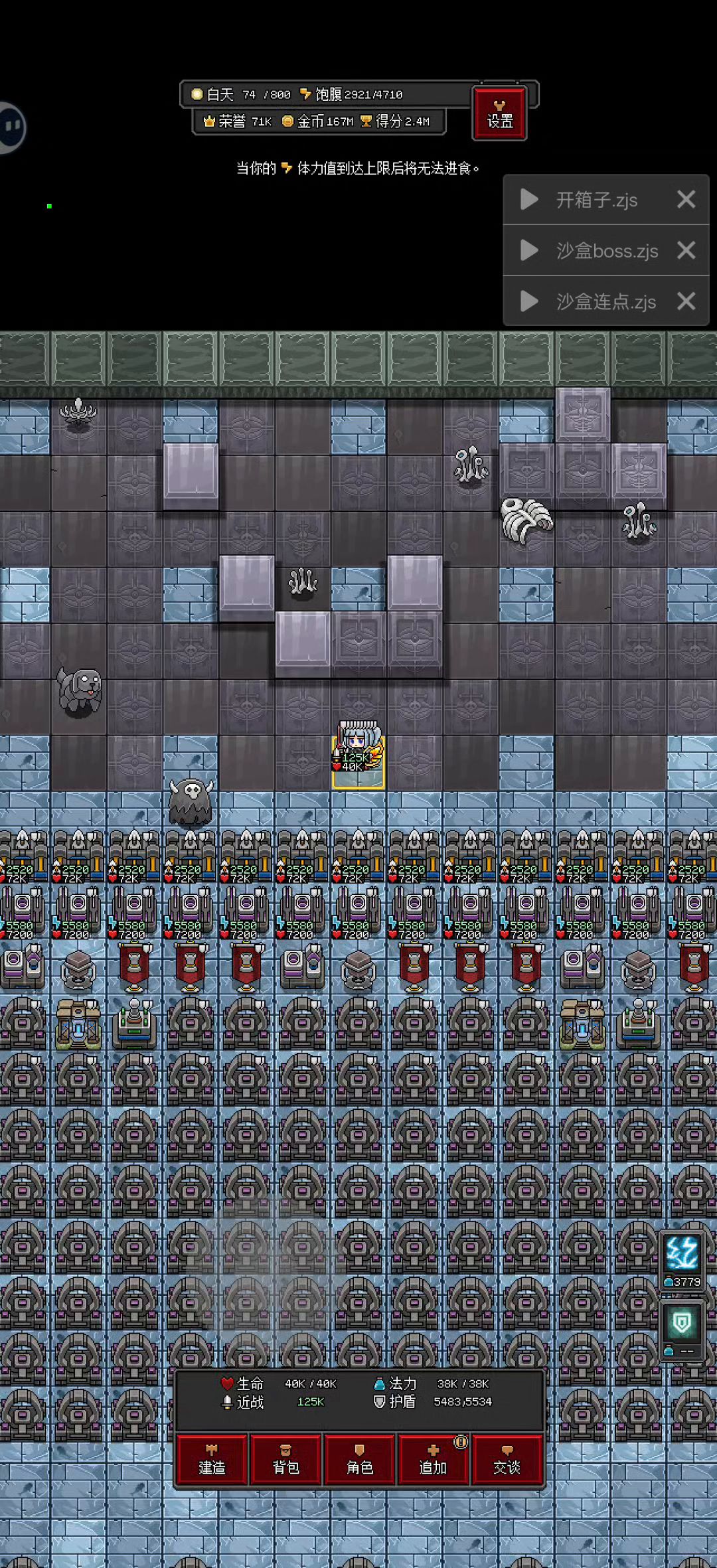 好几年没玩,最近来了兴趣,9月17开的档,边玩边查。 现在感觉发育有点便秘了,圣碑出的也不快,能量圣殿又死吃秘银,卖土是坐牢的[表情_豹哭]几十m的往外卖 刷怪区卡的比较极限吧,51×8 潜能图腾也不知道该咋带30级的,超级传输器8k太容易被能量圣殿塞爆,想直接能量钻探器带回收机供能潜能图腾,结果还不如能量圣殿围一圈供能密度大 那个魔能发射器也试了,一个能量圣殿都输送不走,老是几回合回来一