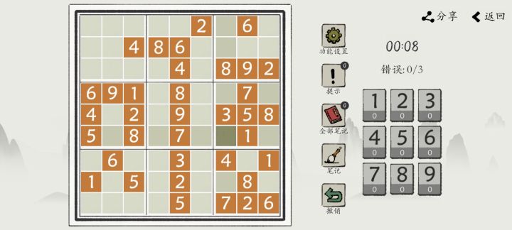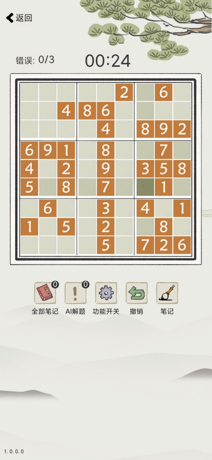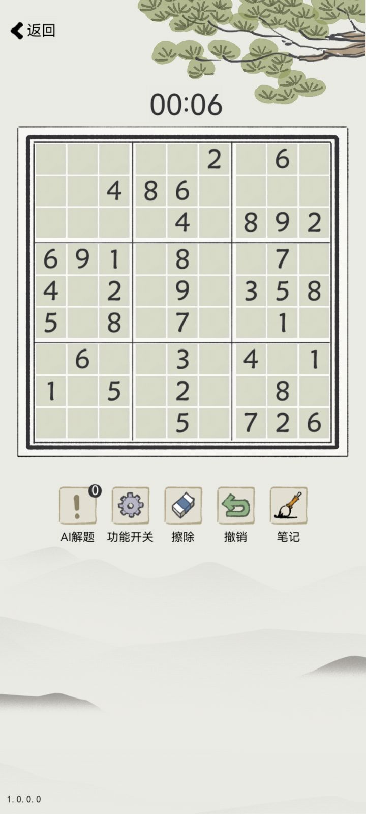 汉字数独做好很久了一直不舍得发有的同学已经在说了游戏里有广告这也是我们压着不发的原因一直是希望申请版号后直接上一个几块钱的付费版但是版号遥遥无期呢最终无奈为了赚点生活费只能硬塞了两个地方的广告一个是使用道具的时候一个是通关的时候会弹出一个5秒的插屏比起其他满天飞的广告汉字数独真的很良心了美术换了好几版呢老在想如何创造一种国风的意境把传统水墨和数独结合在一起一直都