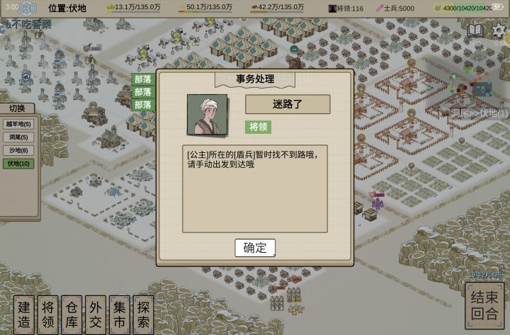 ダ : 补充一下,安排将领的建筑可以自动续产,手动生产需要消耗行动力,取消重新生产也需要(比方说我畜牧业,需要羊,手动生产了牛(一份行动力),取消再生产羊(第二份行动力),就需要双倍行动力)。还有市场,回合内只能行动一次(比方说我需要升级,暂停营业,发现物资不够升级,那么很抱歉,营业不能重启)