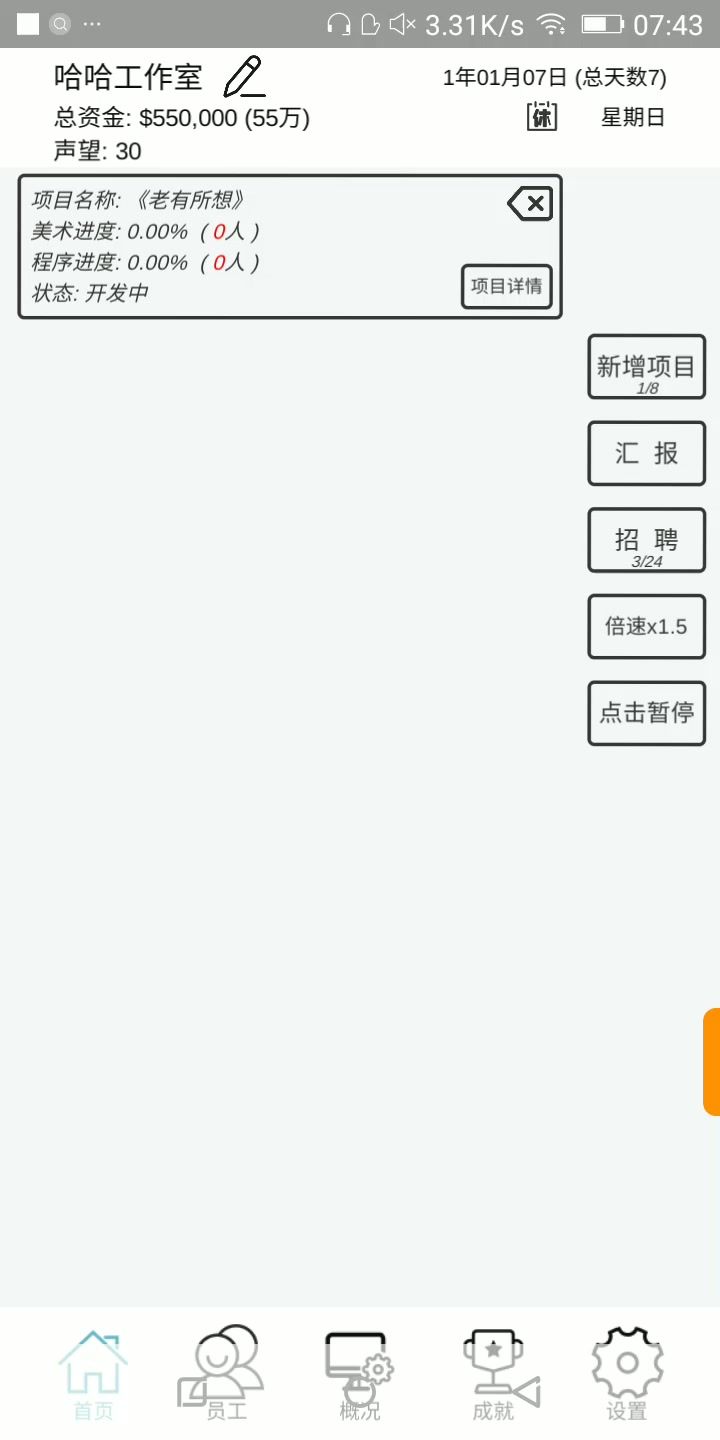 开局直接保底工资10000,只招收博士,我试过了只要不非,能做一款比较低的动作游戏,或者策略游戏,20美术,21策划部,49广告,几百万开局妥妥的,不过记得朝九晚六,第一个游戏做完之后就改回来