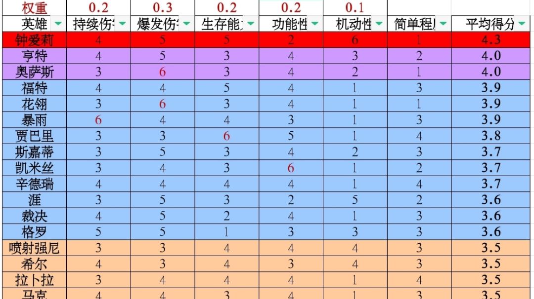 另外,我会根据英雄的机制和特性分为以下这