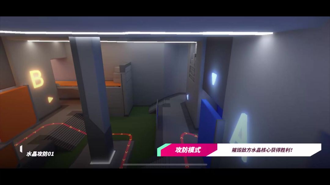 水晶攻防共有三路,这里从己方视角来分分为左(高台)、中、右(地方高台)三路。本攻略包含左中两路的点位,右路多次尝试暂未发现,欢迎大佬补充 1.中路 也是个人感觉最实用的一个点位,可以直接在中间区域柱子位置攻击到敌方水晶,具体操作如下:首先是站位,将视角拉到最下,准星上半部分最下面的边缘对准地面的灯线 其次是瞄准,不移动位置的前提下上半部分准星下边缘对准对面墙上的明暗交界线,这个是需要根据弹道位置微