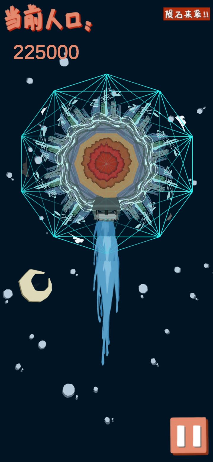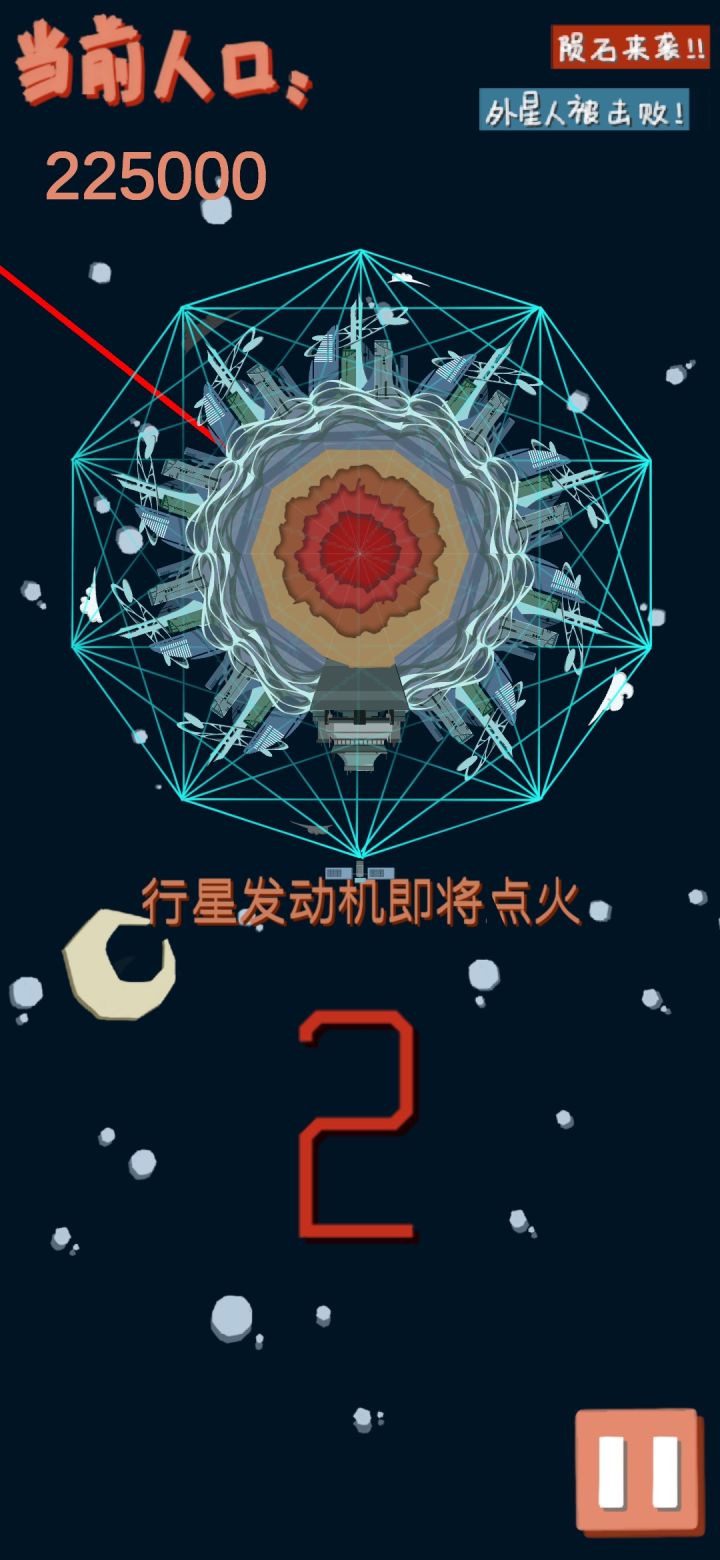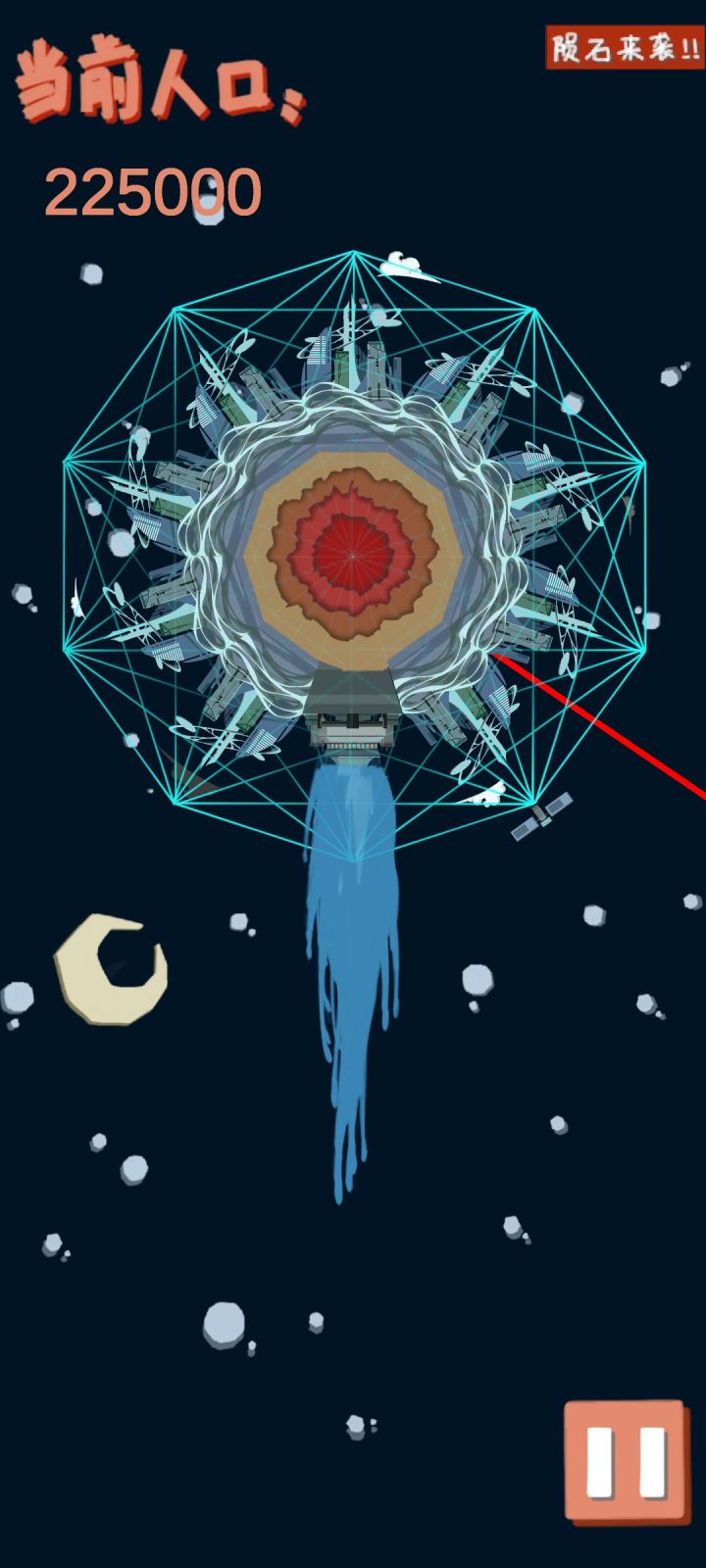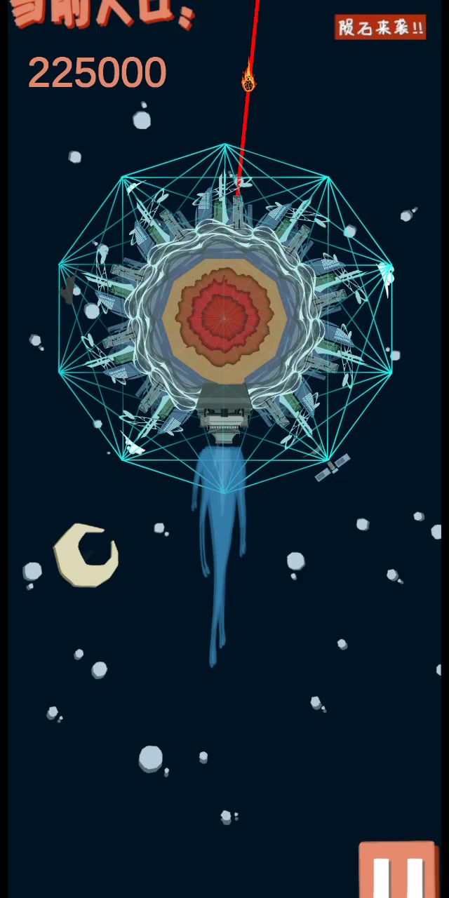 教你如何一分钟通关,我自己都惊呆了。 只要你转得够稳,2秒左右转一圈基本不会有寒潮热潮,这两个减人口最厉害。其次注意躲陨石别砸到城市,海啸就是弟弟没有任何作用,也不减人口。 外星人纯废物不用管,跟他逆着转就行,不用刻意射他。人口超过30004座城市建立陨石防御系统,直接飞升可以躺着看了。