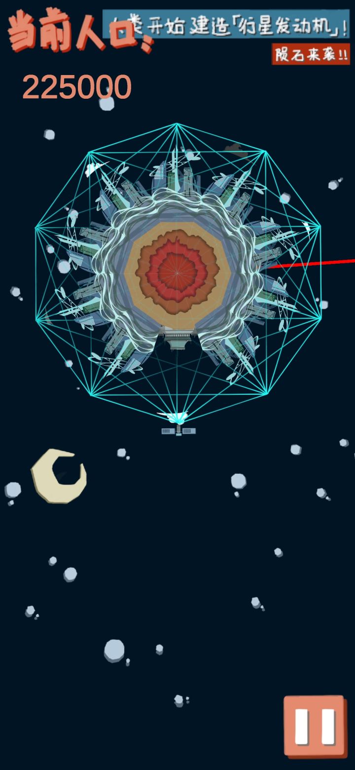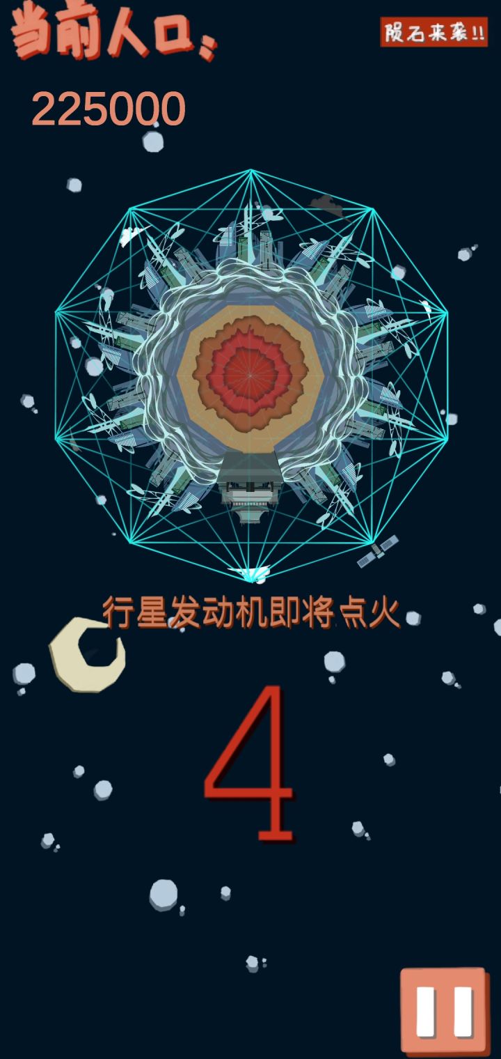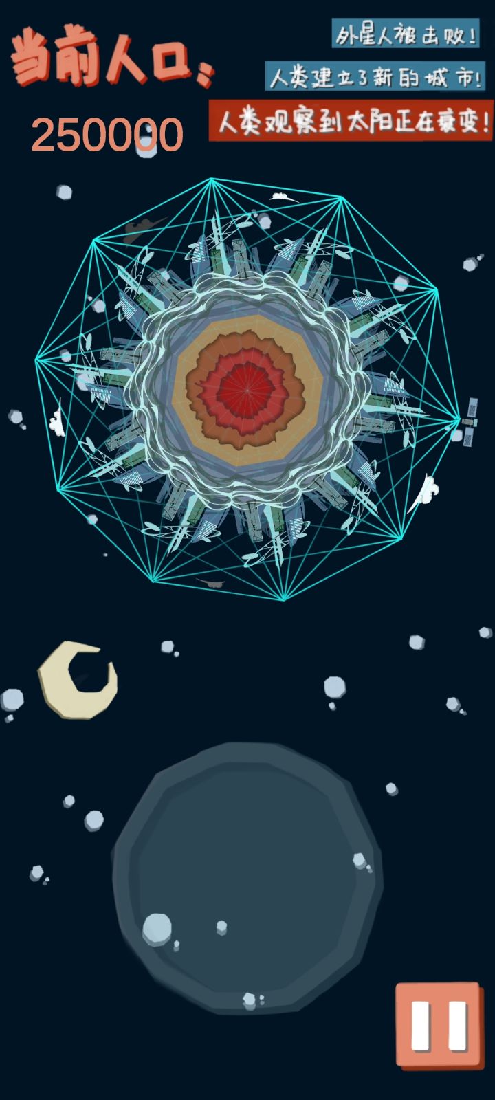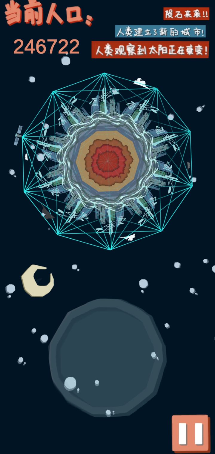 教你如何一分钟通关,我自己都惊呆了。 只要你转得够稳,2秒左右转一圈基本不会有寒潮热潮,这两个减人口最厉害。其次注意躲陨石别砸到城市,海啸就是弟弟没有任何作用,也不减人口。 外星人纯废物不用管,跟他逆着转就行,不用刻意射他。人口超过30004座城市建立陨石防御系统,直接飞升可以躺着看了。