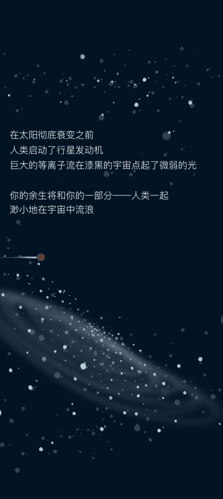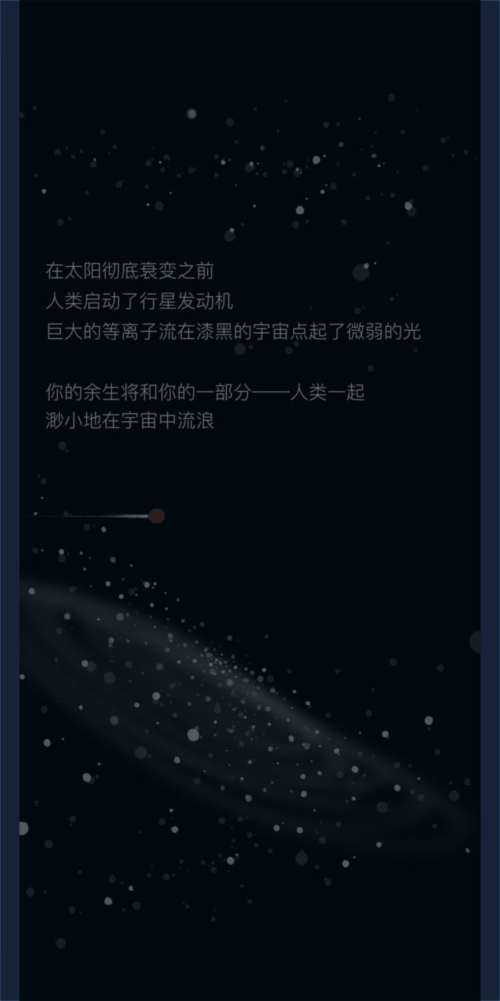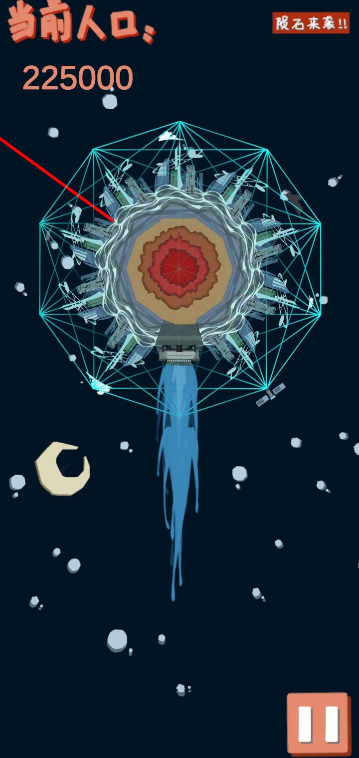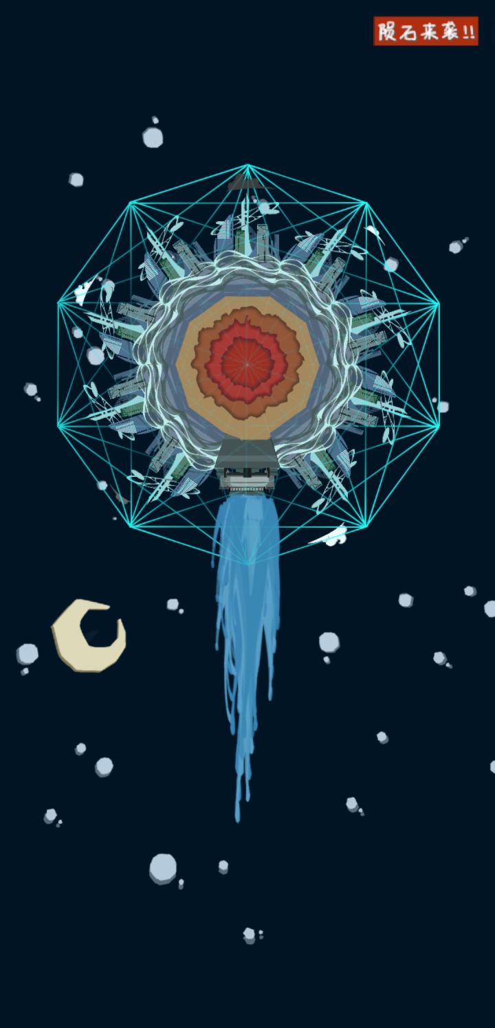 不过开发者的话里面写了“因为我选择了错误的方向所以导致了游戏的失败,以后大概率不会更新这个游戏了”玩了一会,通关了。感觉还是蛮不错的。我觉得甚至可以启动了发动机开始逃离后也不是结束,而是可以操控星球的方向继续躲避各种星球陨石。甚至可以加入引力这一概念,你会被大的星球吸引而你要躲避,小的星球可以被你吸引,你可以加速甩开或者维持速度让它成为你的卫星。最后到达一个合适的星系原地发展,不过这个时候不是