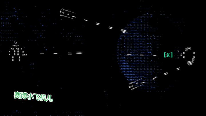 这是一个画面都由字符变化而来的STG游戏,游戏中的战机可以变化几种不同的形态应对各类不同的挑战,每个形态都有带点梗的技能和大招