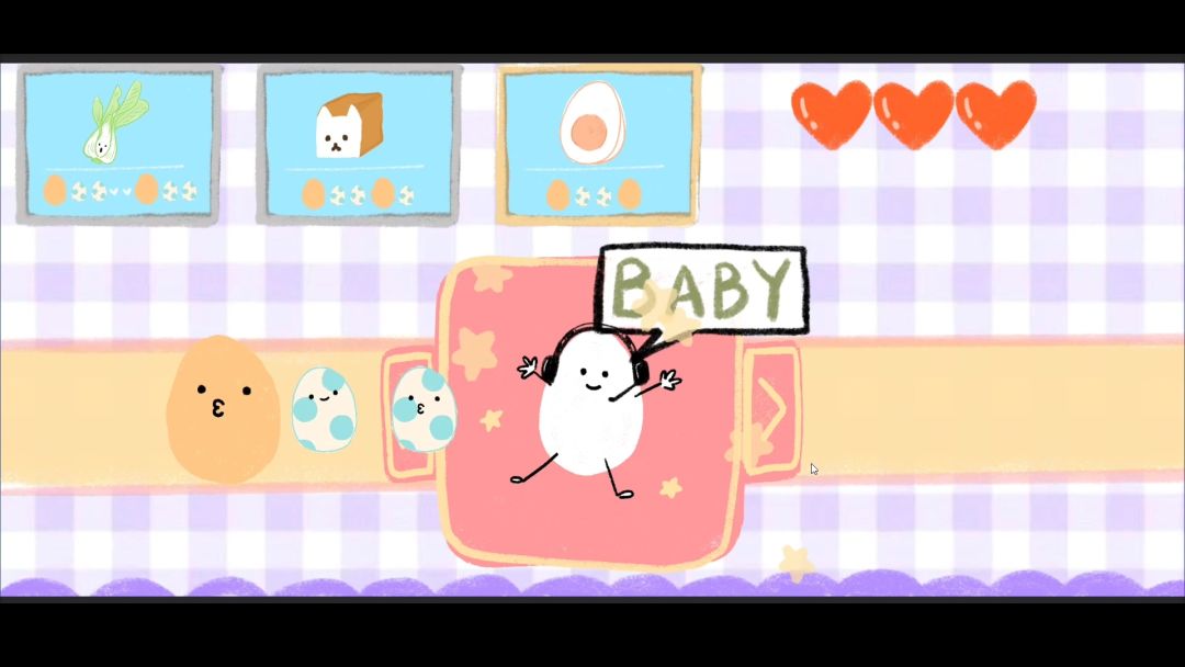 在游戏的上方界面,会按照顺序显示一系列的食谱,当完成菜谱上显示的蛋时,便可成功将它们变换成菜谱上显示的物品。