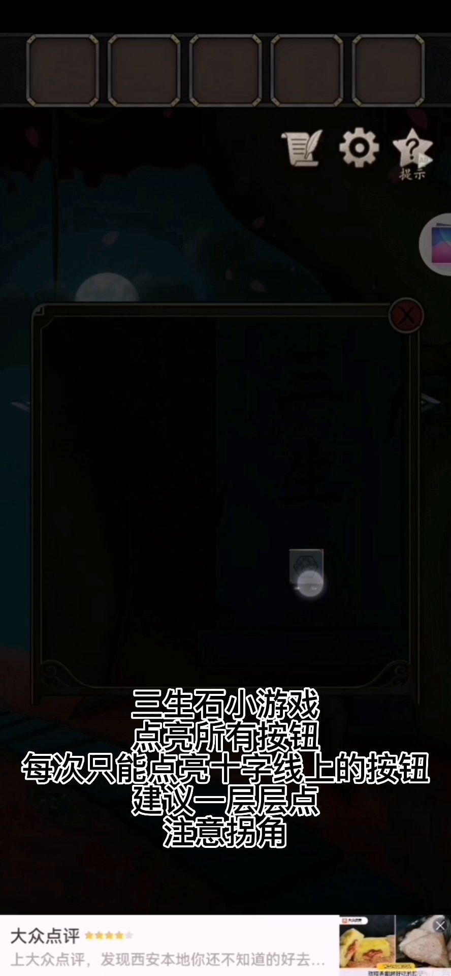 攻略组攻略优化更新,希望大家继续提意见给我们,攻略组会继续加油的!第一章1.在游戏一开始跟着提示点击台子,在台子上面可以找到火柴,是用火柴点燃蜡烛。1.12.在蜡烛旁边的碗当中有提示,之后回到主场景向右切换,在地上板凳的底部可以找到一个物品创可贴。2.13.接着点墙后面的壁画,按下旁边的按钮,再是用创可贴沾上旁边的按钮。现在我们暂时还不知道密码。3>>✅迷失攻略组目前已经制作了大量的游戏