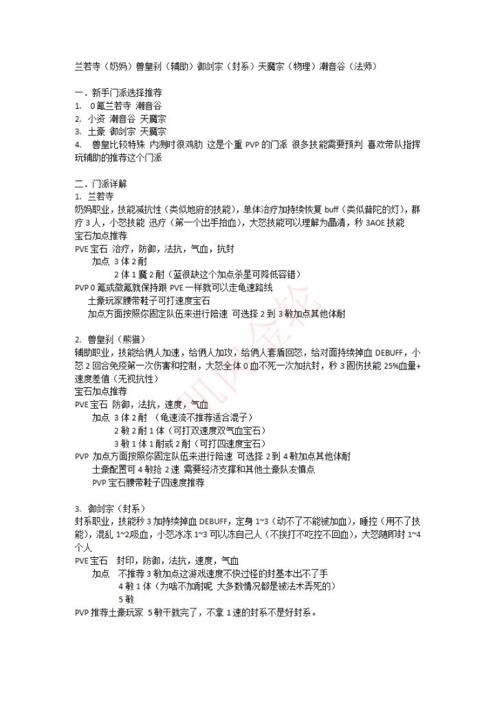 新手门派选择攻略
